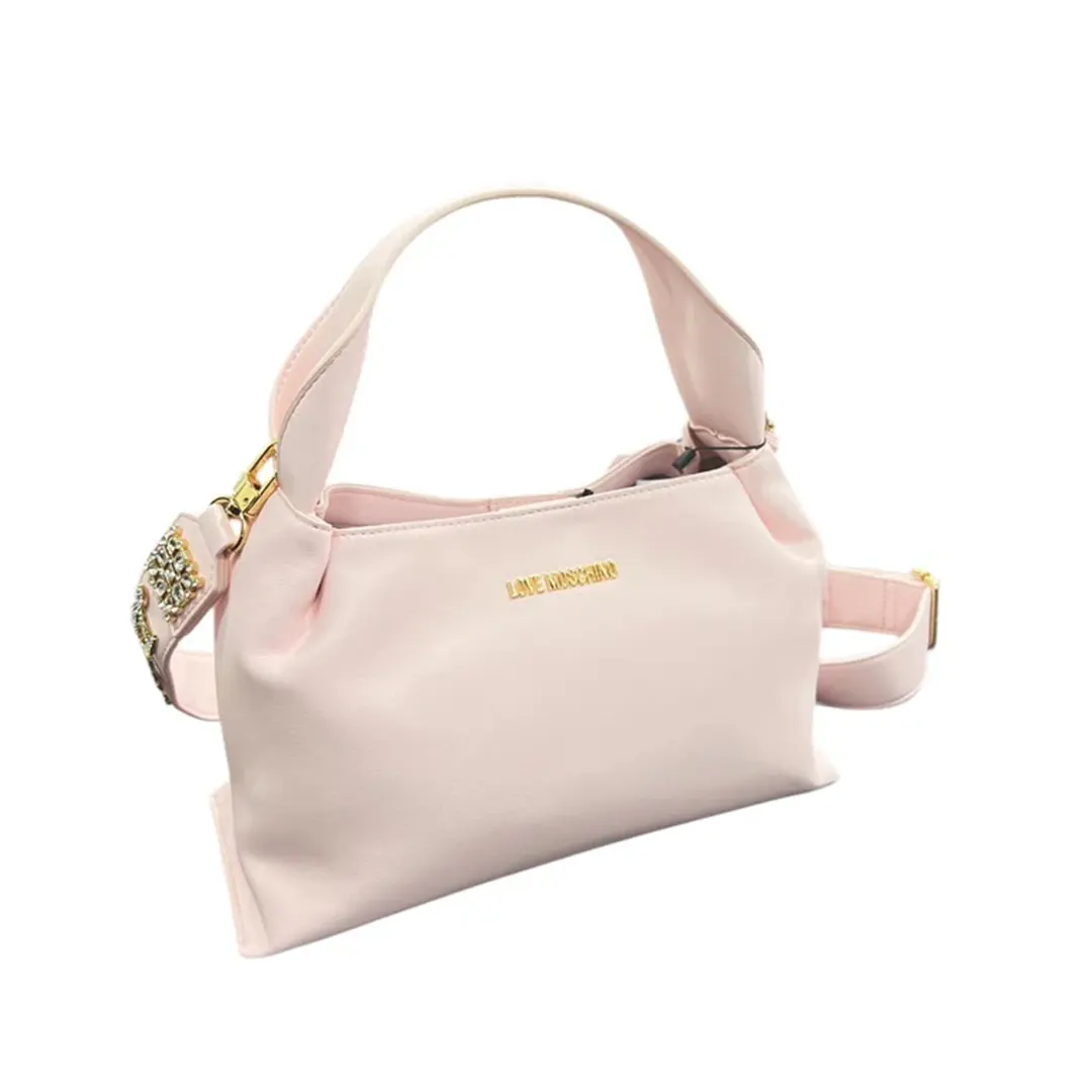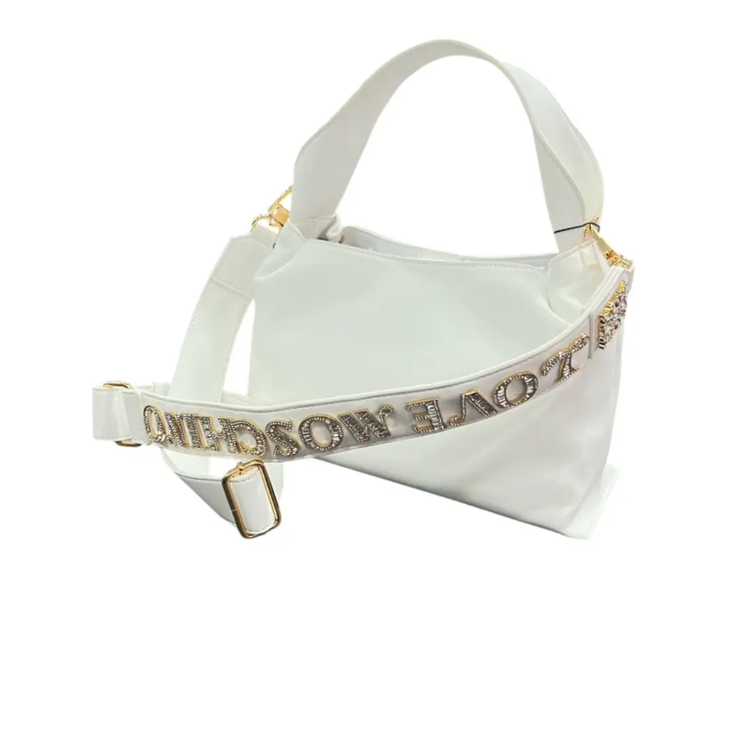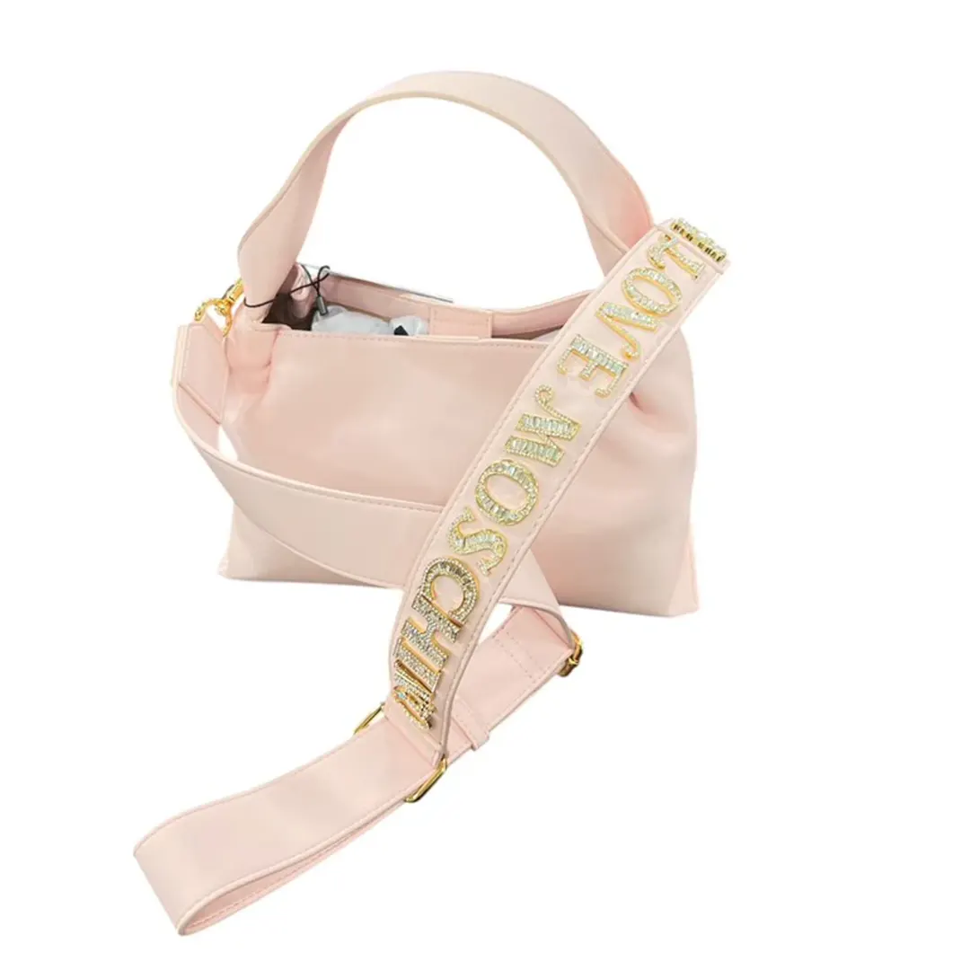 Borsa a spalla in ecopelle con logo lettering in strass