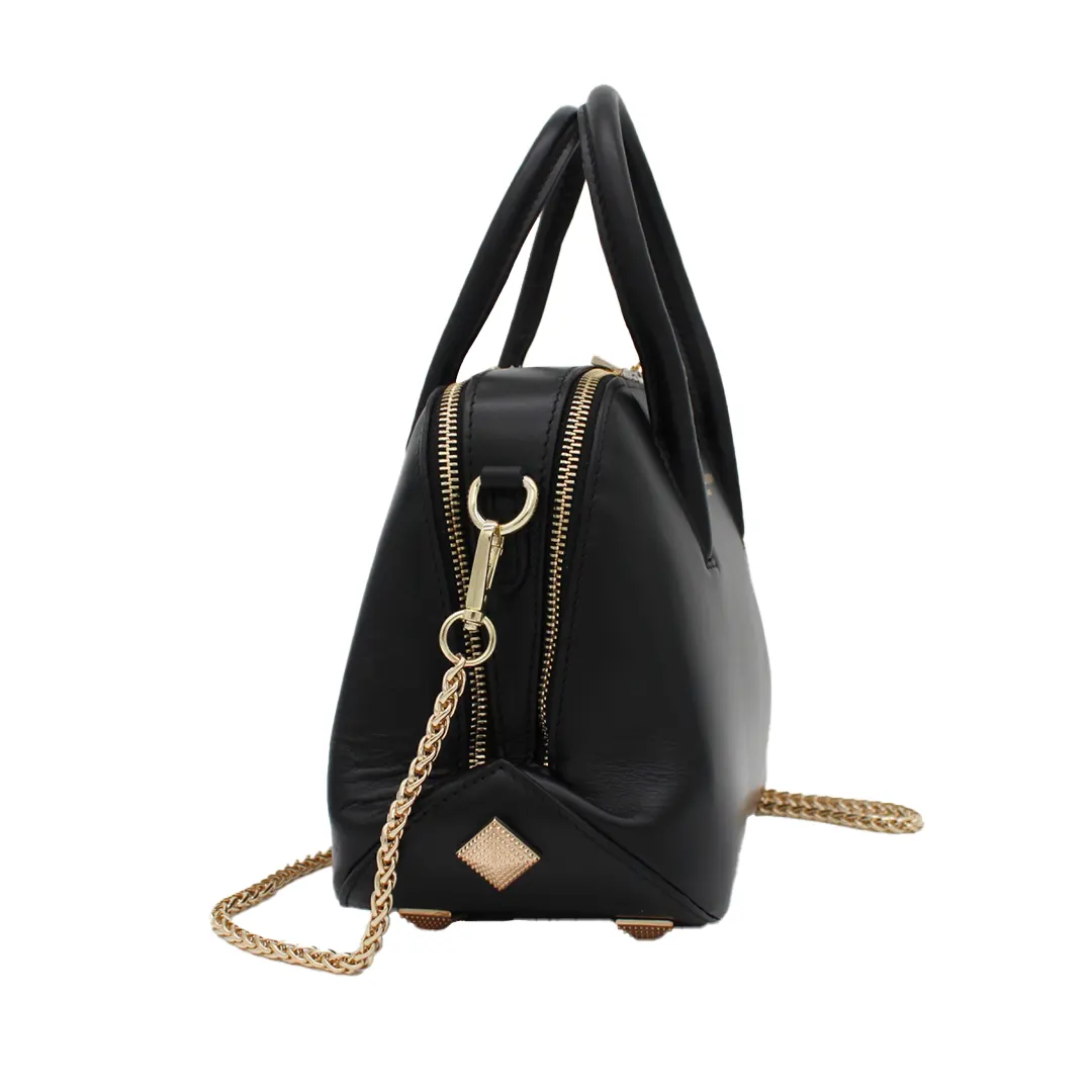 Borsa in vera pelle semirigida, opaca, spazzolata.