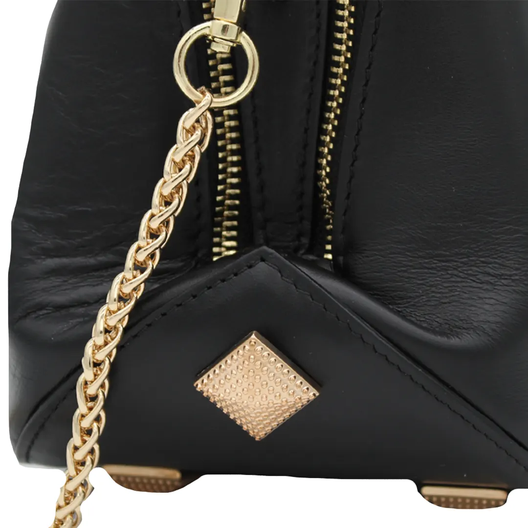 Logo frontale stampato, decoro di borchie metallici sui lati.