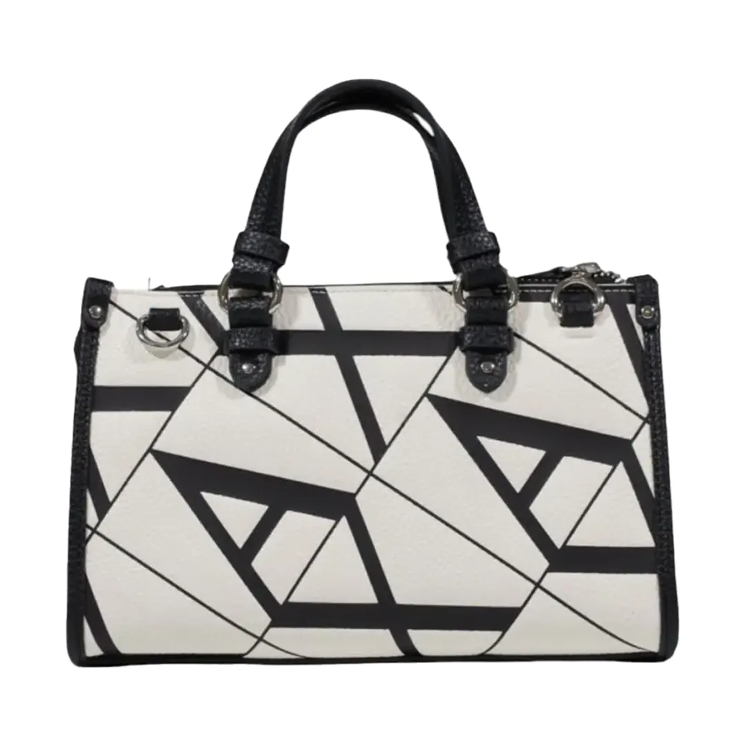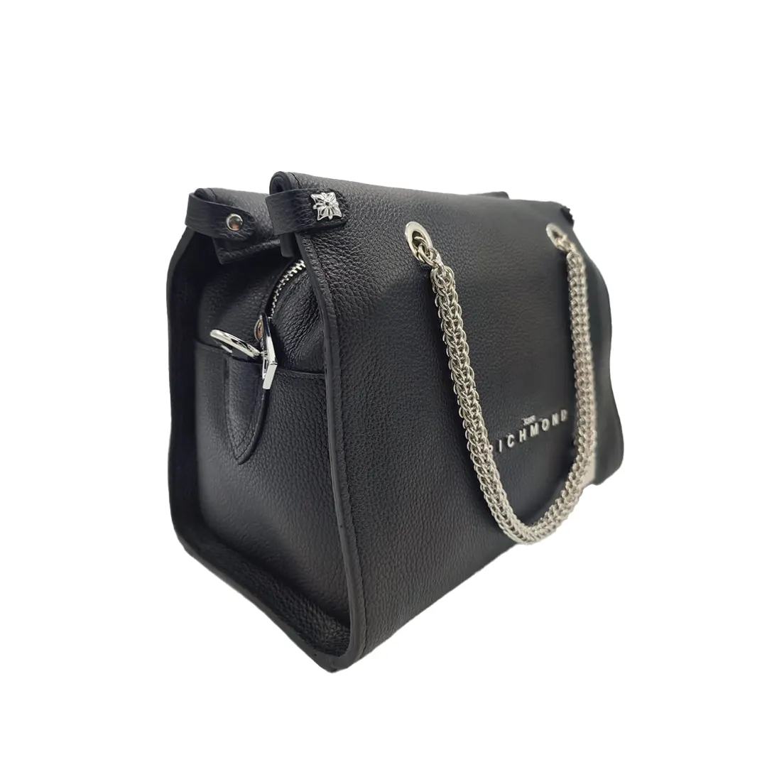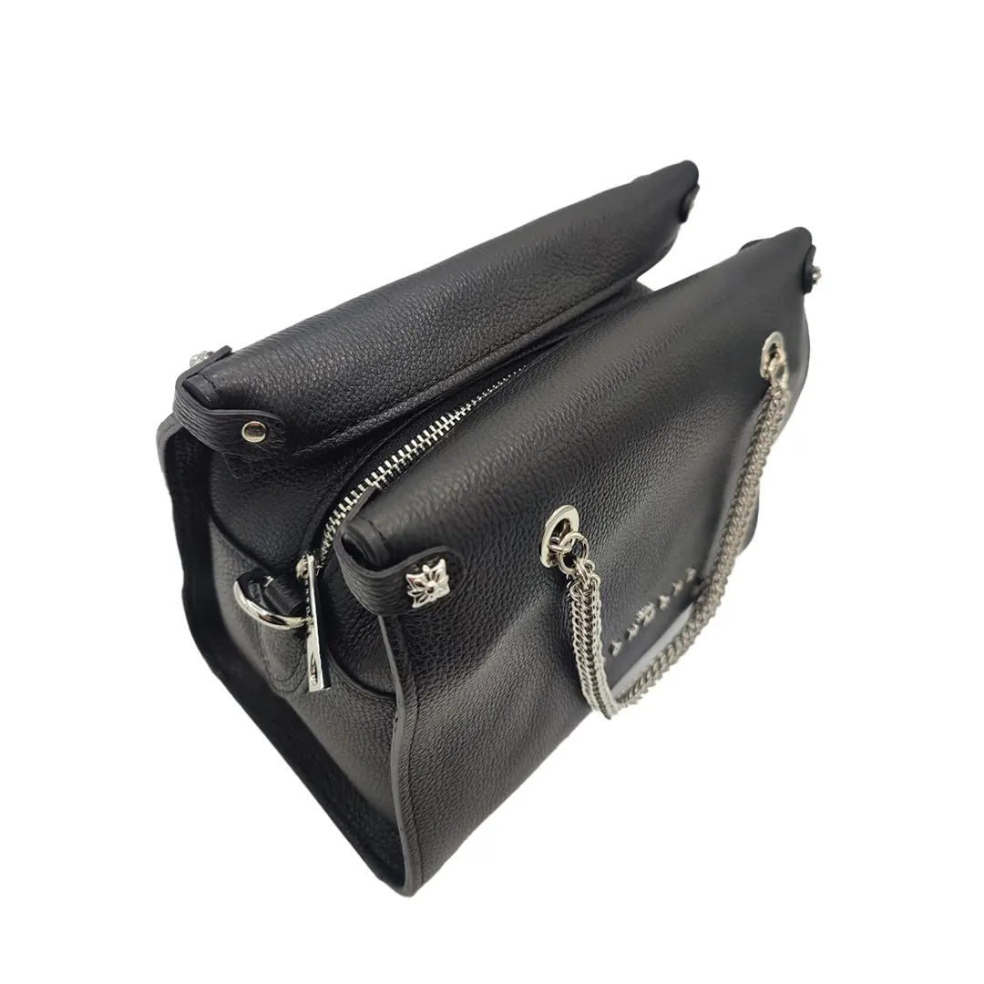 E’ dotata di due manici a catena e di una tracolla removibile in vera pelle.