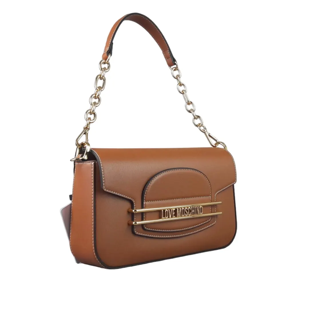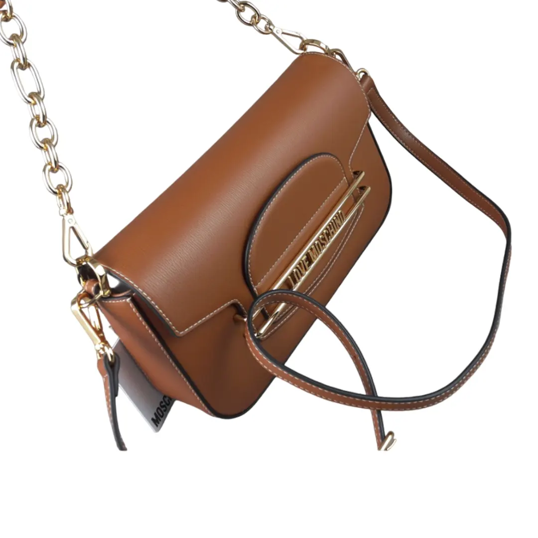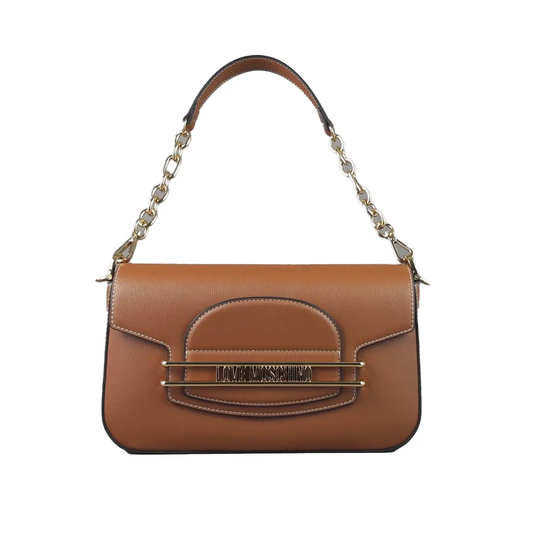 Borsa a spalla donna in poliuretano, doppia tracolla in metallo e pu, chiusura con patta e clip, logo metallo frontale