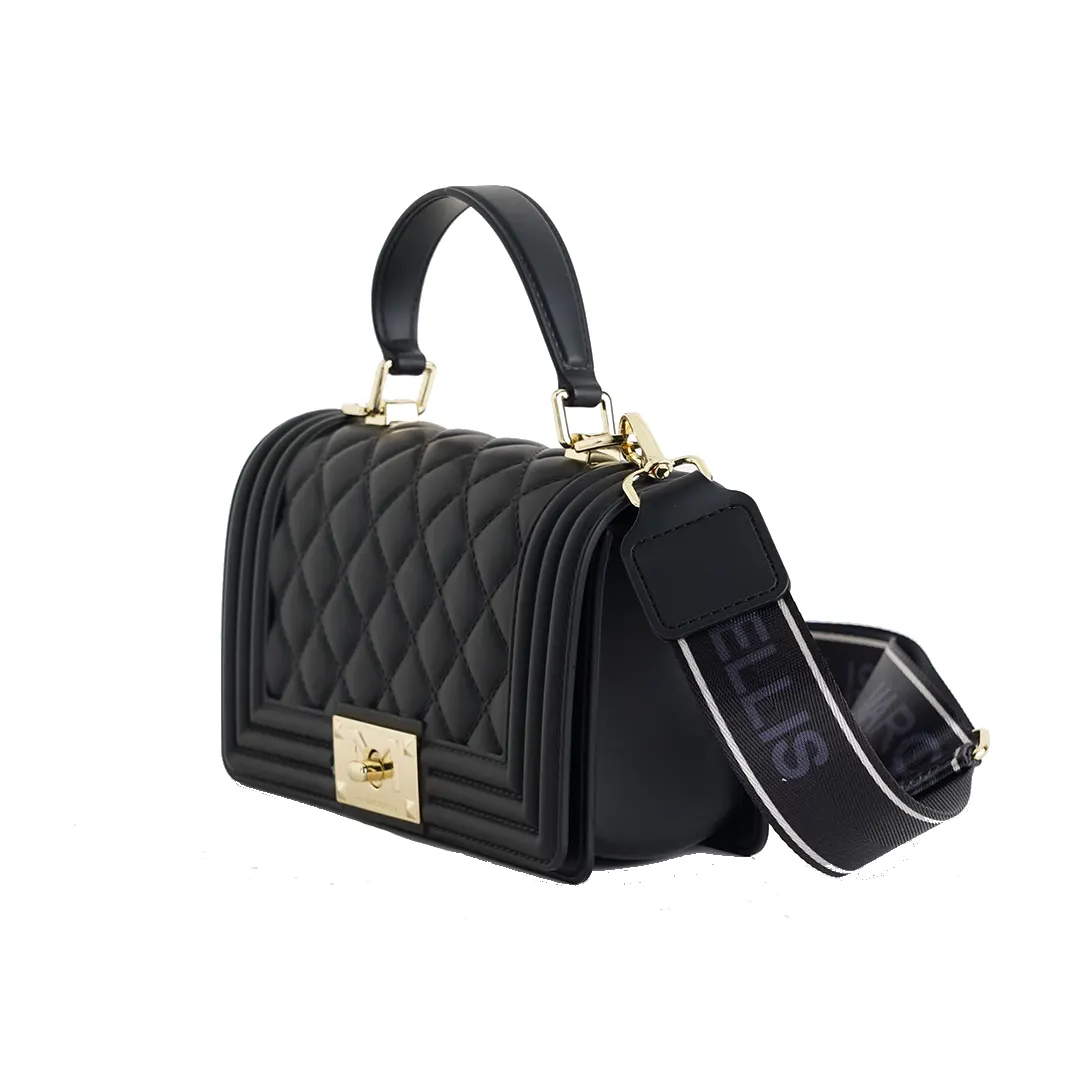 Realizzata interamente in pvc di alta qualità, questa borsa si distingue per la sua texture matelassé, un dettaglio iconico che aggiunge un tocco di lusso ad ogni outfit. La sua forma compatta e strutturata è valorizzata da una raffinata tracolla a catena, che consente di portarla comodamente a spalla o di trasformarla in una pochette elegante.