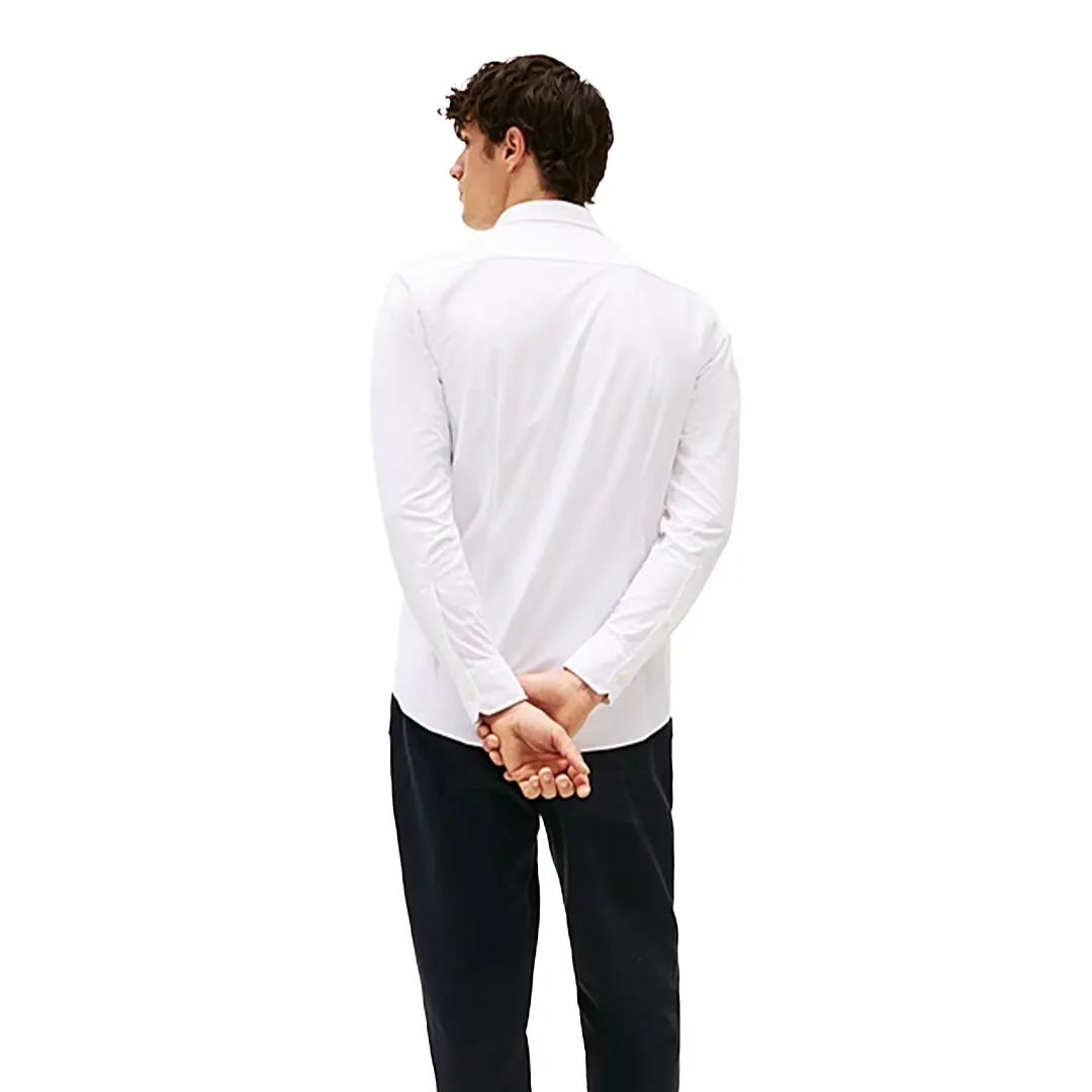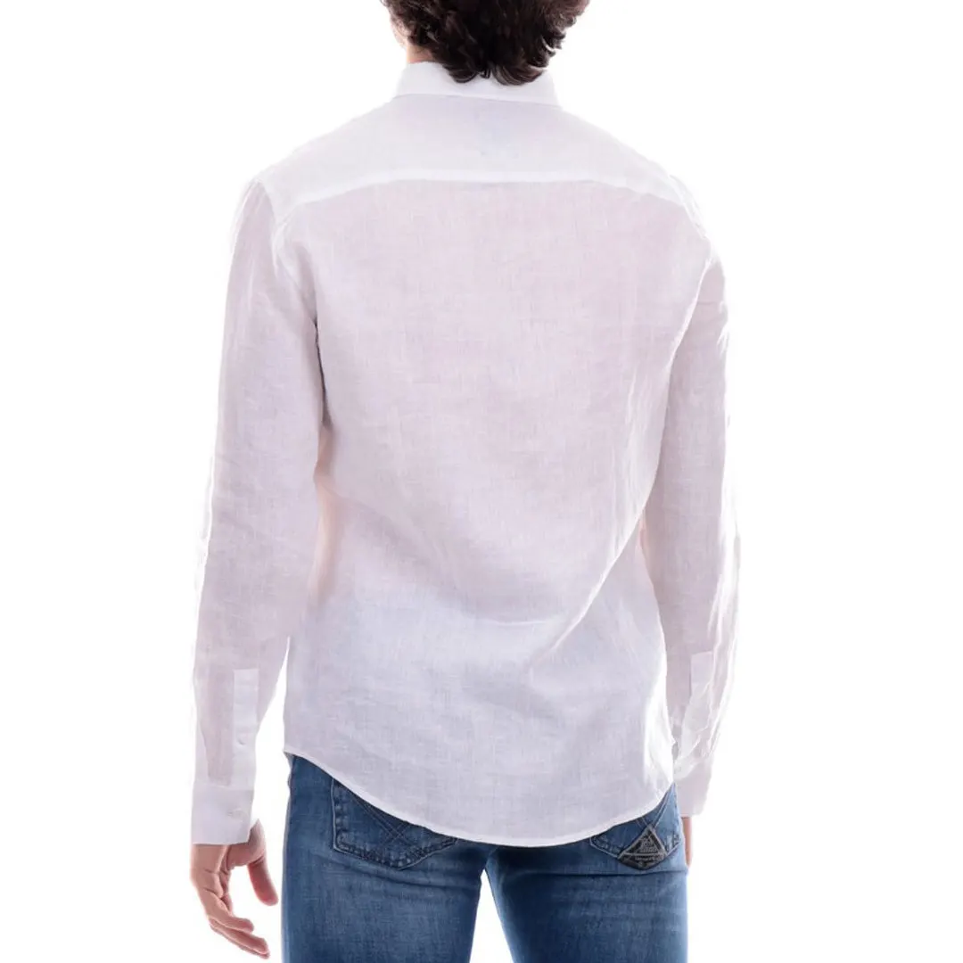 camicia in lino con bottoni colletto classico chiusura frontale con bottoni maniche lunghe orlo arrotondato
