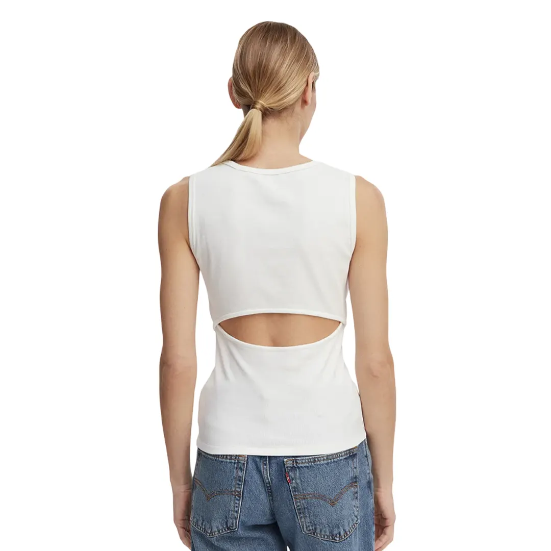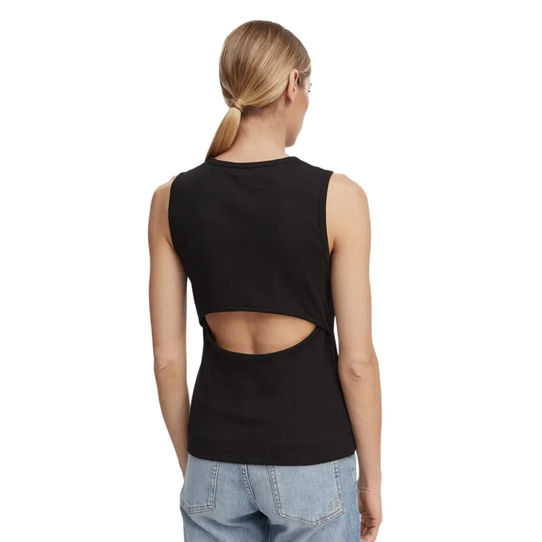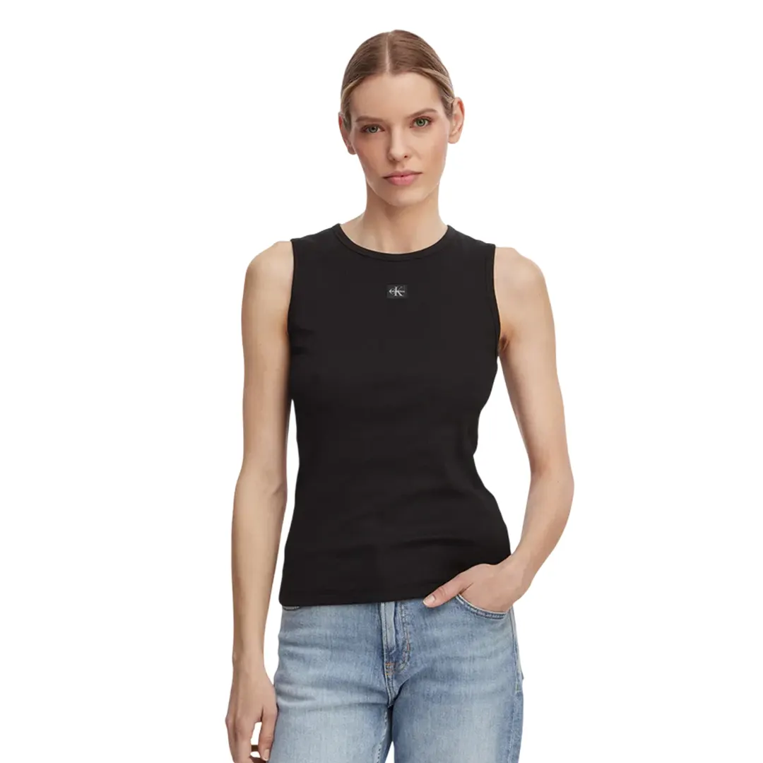 Top donna Calvin Klein con taglio sul retro, girocollo, smanicato, logo frontale.