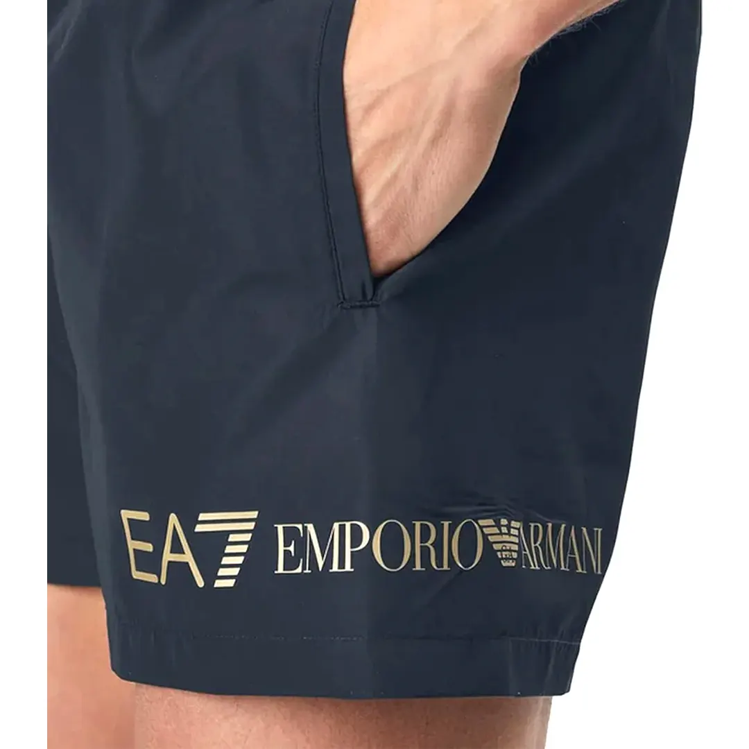 Costume da uomo a boxer, pensato per nuotatori outdoor e indoor. Un modello che assicura una buona libertà di movimento e comodità, personalizzato dal logo EA7
