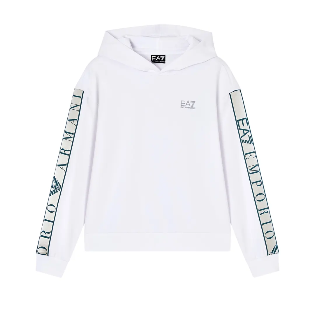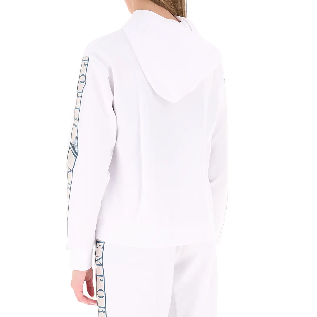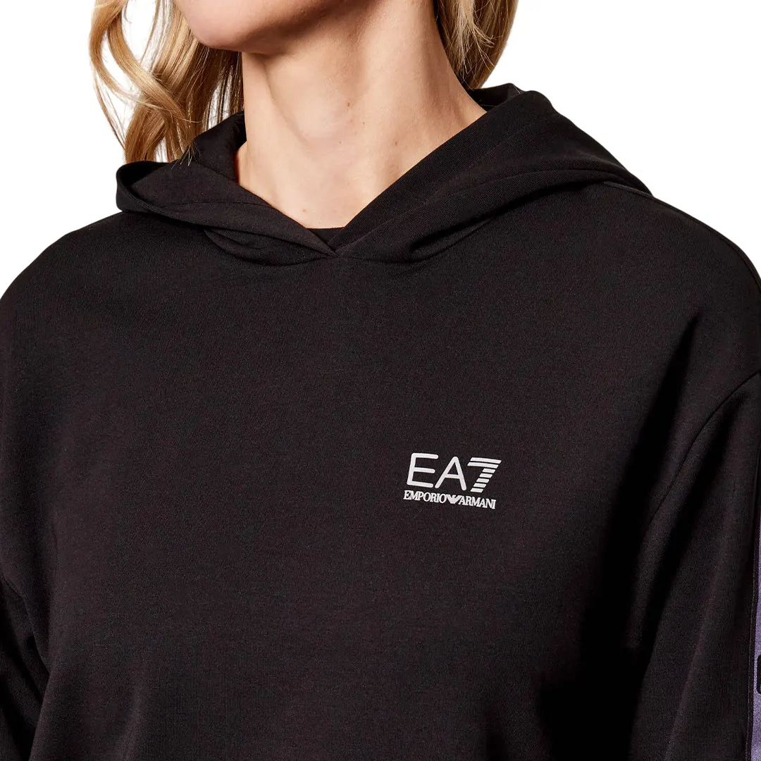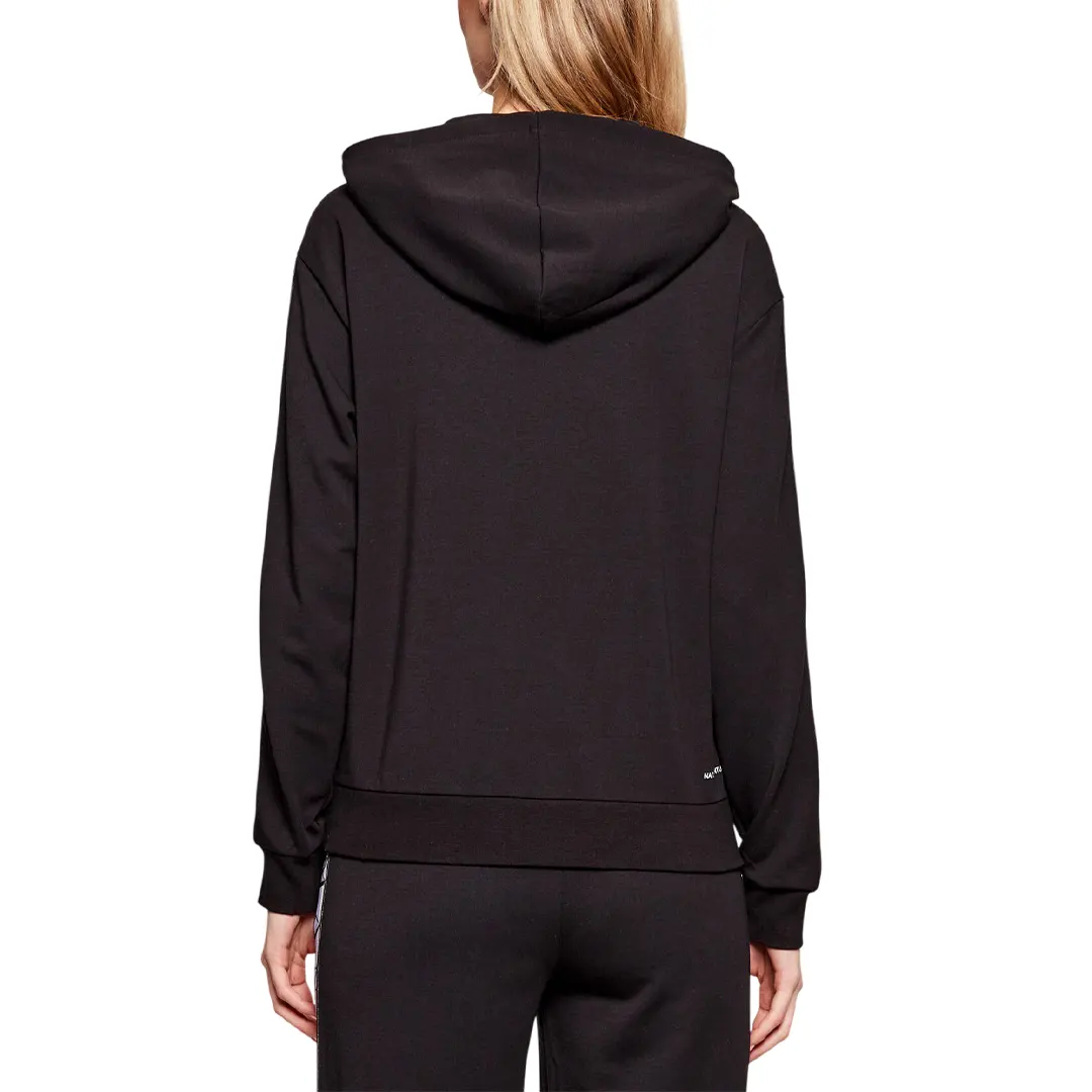 Felpa donna sportiva con cappuccio, caratterizzata da un logo a contrasto sul petto.