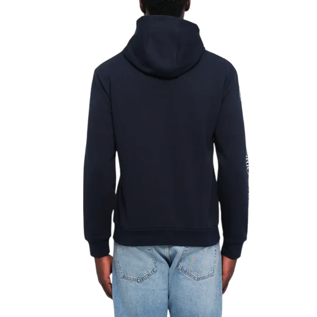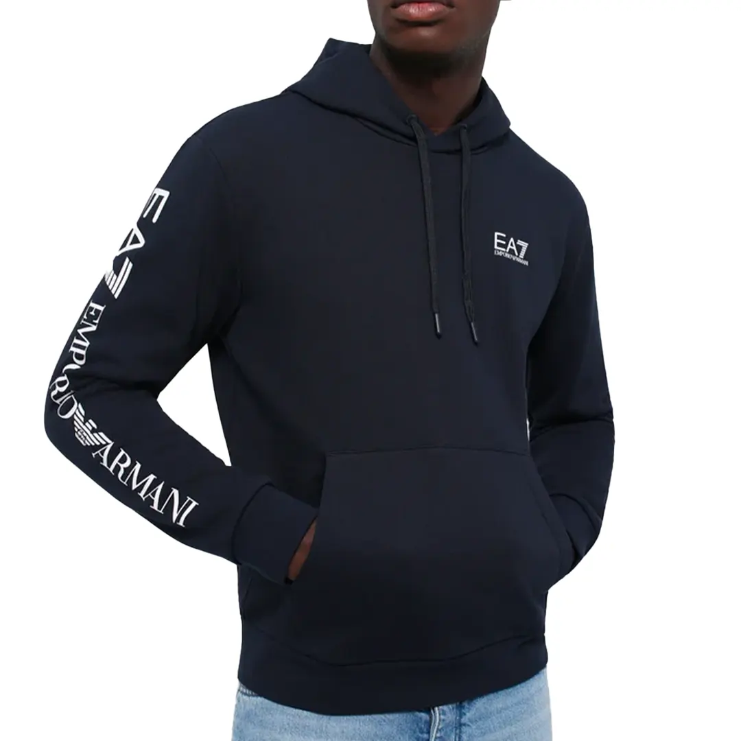 EA7 Felpa con cappuccio da uomo. Questa felpa con cappuccio è la sintesi perfetta tra comfort sportivo e stile urbano. Realizzata in tessuto compatto e morbido al tatto, si presenta con un design pulito e contemporaneo. Il taglio è regolare, con cappuccio regolabile tramite coulisse, polsini e fondo elasticizzati, e un’ampia tasca a marsupio sul davanti, ideale per un uso quotidiano e pratico. Sul petto e sulla manica è stampato il logo EA7. Una felpa perfetta per un total look sportivo firmato, da indossare nel tempo libero o come parte di un outfit streetwear ricercato.
