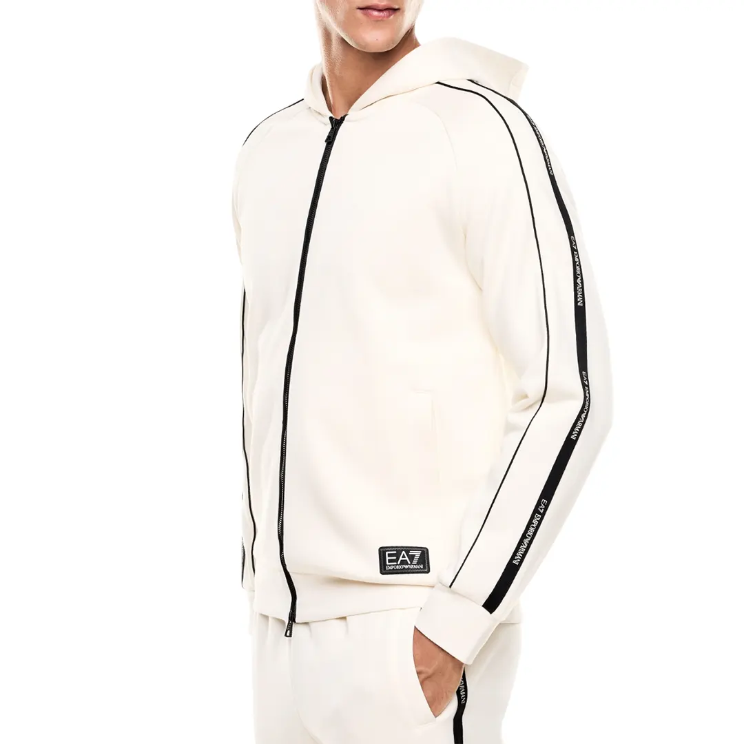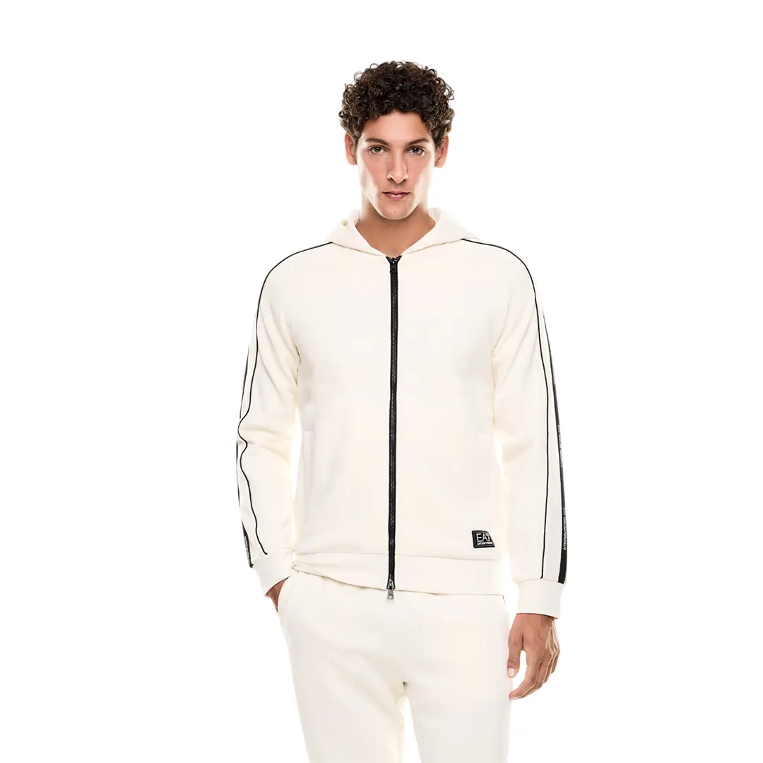Felpa con cappuccio e chiusura full zip realizzata in misto cotone, dalla vestibilità regular. Il modello è personalizzato dal dettaglio con logo tape sulle spalle e dal logo EA7 sul petto, che riprende altri creazioni della linea Logo Series. Il logo EA7 è il vero protagonista della proposta Logo Series, che in questa stagione si declina in diverse animazioni: tono su tono, grafiche retrò e formati mini. Capi dal fit confortevole e versatile, perfetti per vestire momenti di relax e svago.