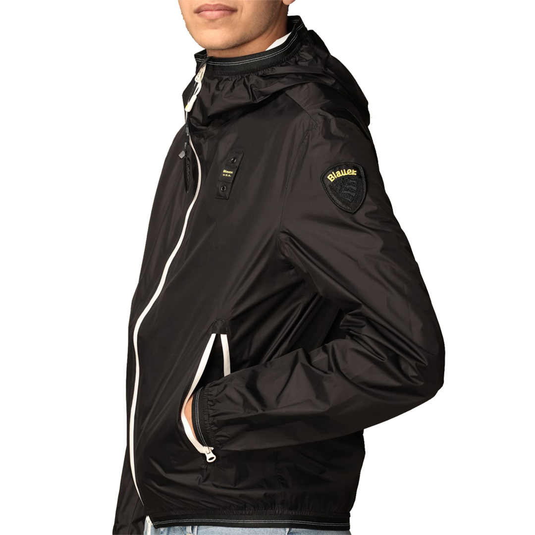 Giacca a vento in nylon sfoderato con cappuccio fisso.