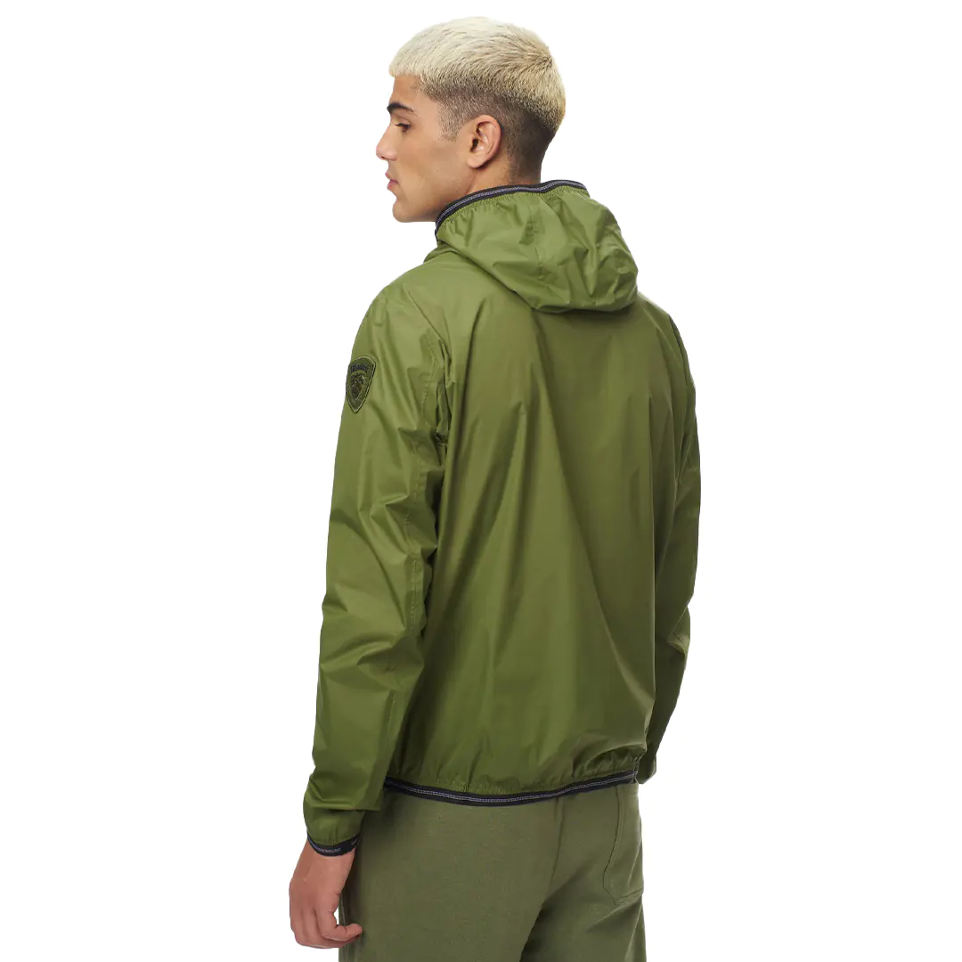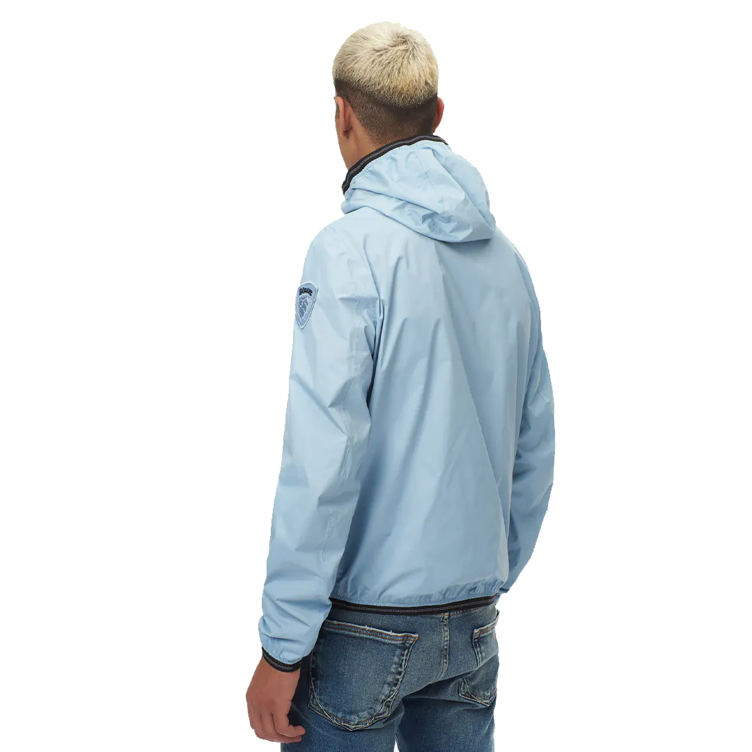 Giacca a vento in nylon sfoderato con cappuccio fisso.