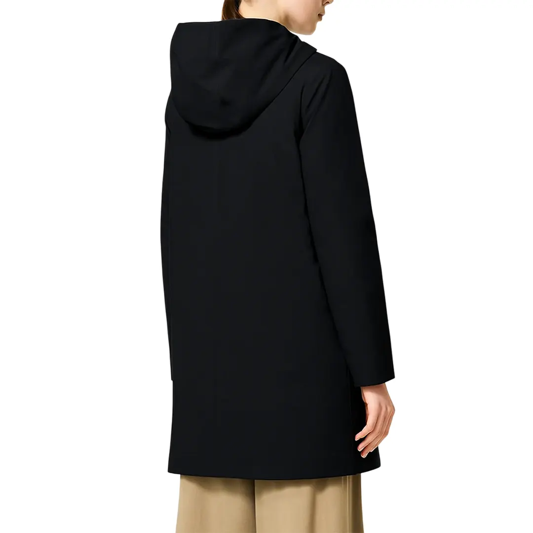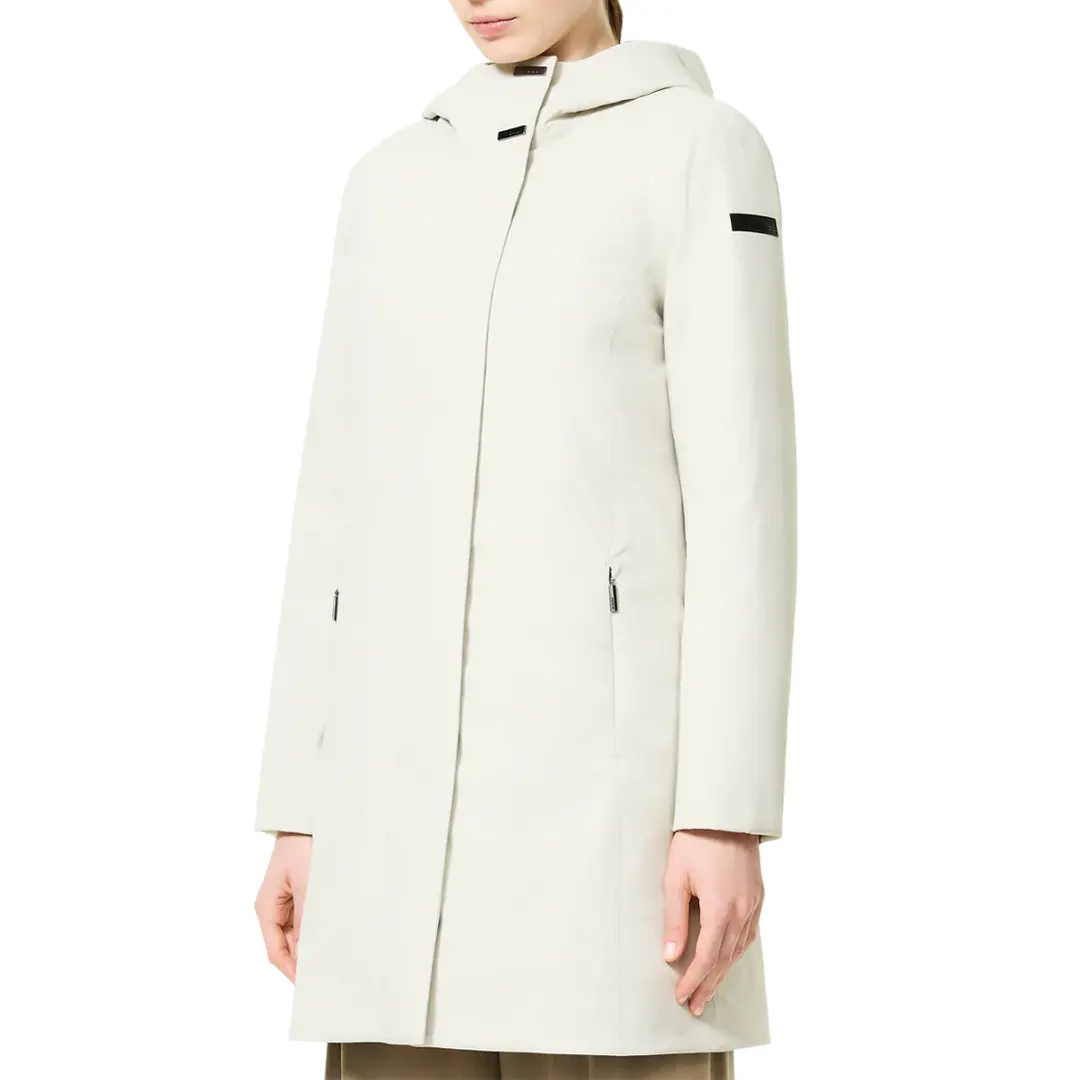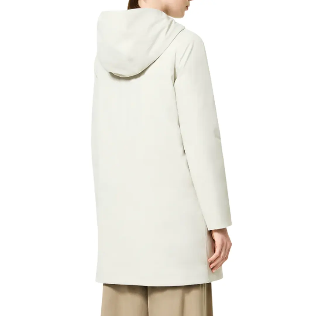 La giacca invernale di lunghezza media si caratterizza per il design funzionale e minimalista, che la rende unica per praticità, isolamento e protezione dal freddo e dalla pioggia. Realizzata in tessuto a membrana impermeabile e traspirante, presenta l’esterno in esclusivo Montecristo dal look opaco e liscio al tatto. L’innovativo sistema floating shield offre un abbraccio di calore dal fit impeccabile, grazie ai canali tubici che contengono l’imbottitura in piuma d’anatra. Il cappuccio, anch’esso imbottito, presenta un design essenziale e raffinato che incornicia delicatamente il viso. Sul davanti, la chiusura a zip è nascosta dalla patta impreziosita dai bottoni a barretta gun metal, che donano un tocco di eleganza contemporanea. Per la sua versatilità, la giacca è ideale nell’aggiungere un twist glam nella creazione di look decisi e distintivi, in abbinamento alla camicia dal taglio maschile e al morbido pantalone palazzo.