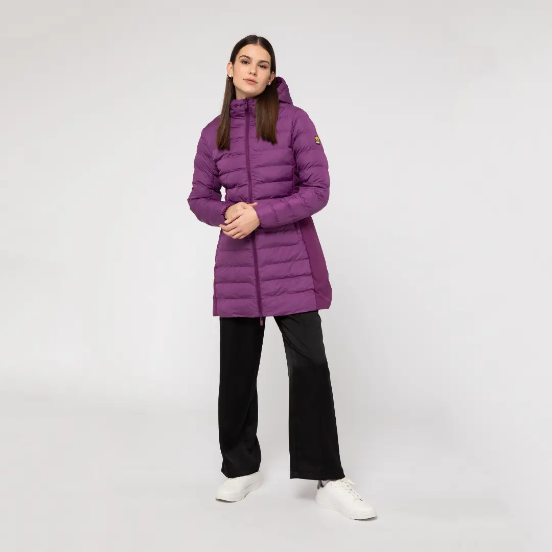 Due piumini in uno, da un lato liscio, essenziale e minimal, dall’altro caratterizzato da filze e dettagli a contrasto, il Jusy è uno dei capi più funzionali della collezione Ciesse Piumini Active. Realizzato in una variante colore neutra e versatile, questo piumino resiste all’acqua ed al vento e si caratterizza per l’imbottitura, il tessuto, e le zip riciclati. Un evergreen adatto sia alla mezza stagione che ad un inverno non troppo freddo, il Jusy è lungo fino al ginocchio e si caratterizza per un tessuto tecnico 4 way stretch doppio strato, dettagli in tono e bordi in Lycra che ne esaltano l’aspetto dinamico, ma allo stesso tempo minimal.