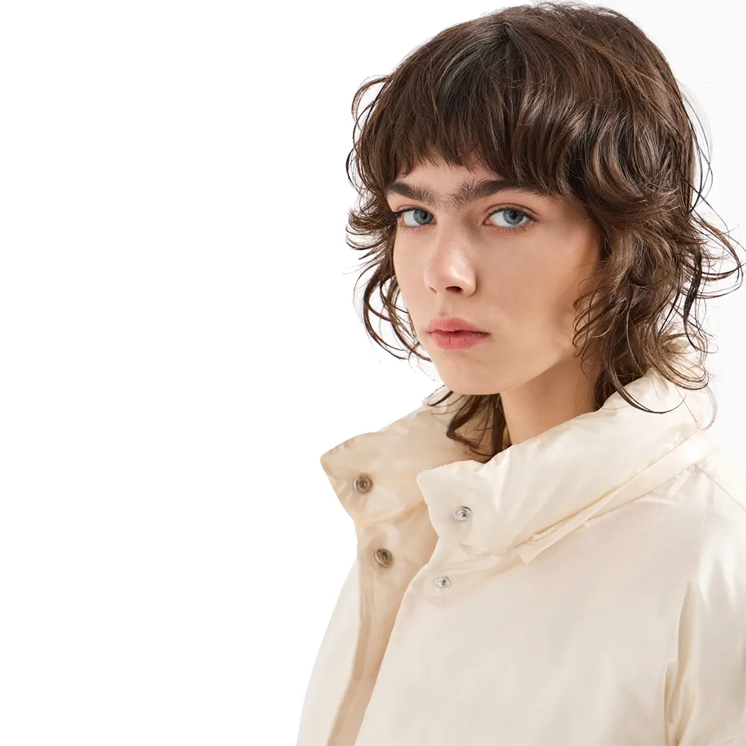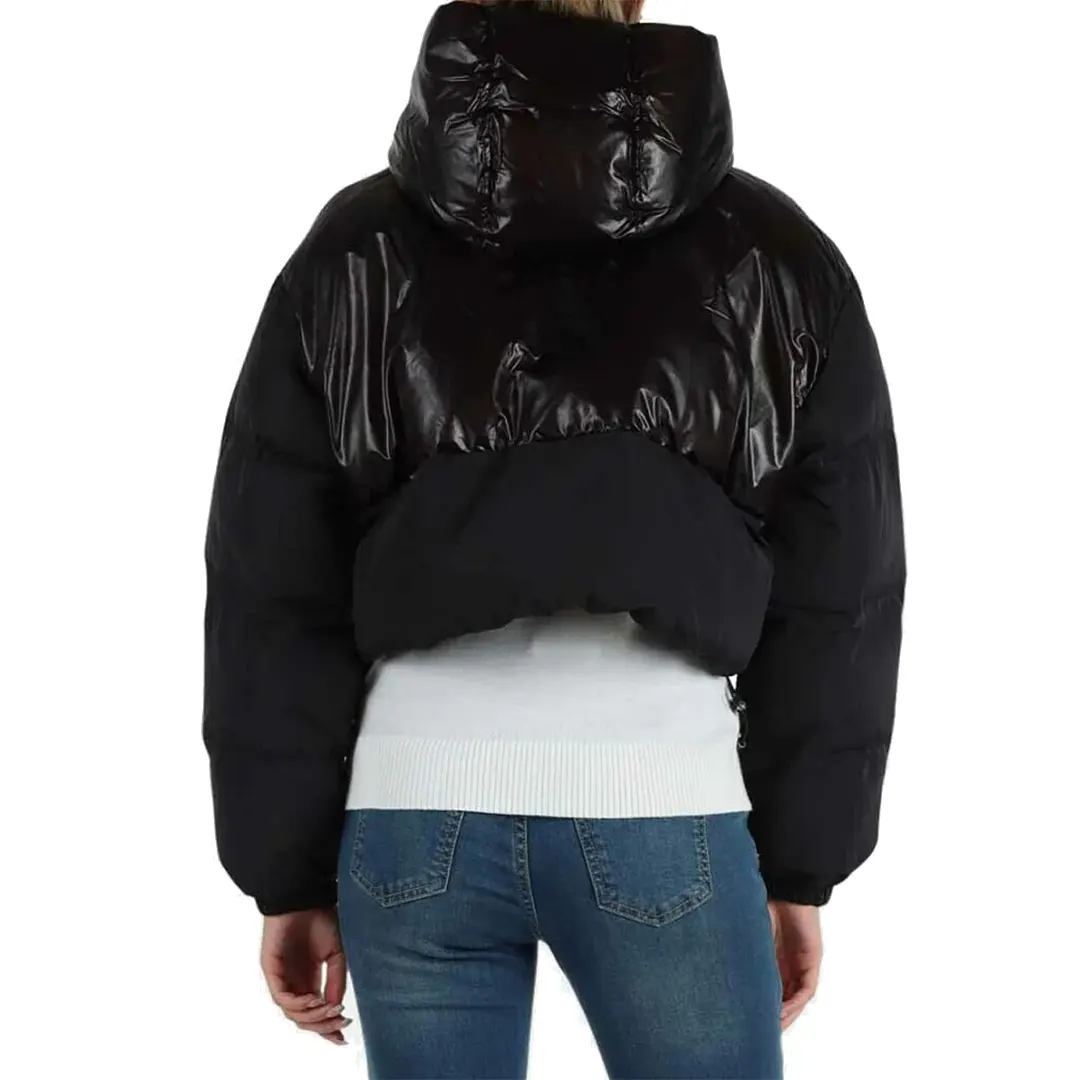 GIUBBOTTO CROPPED IN TESSUTO CRINKLE LUCIDO CON CAPPUCCIO