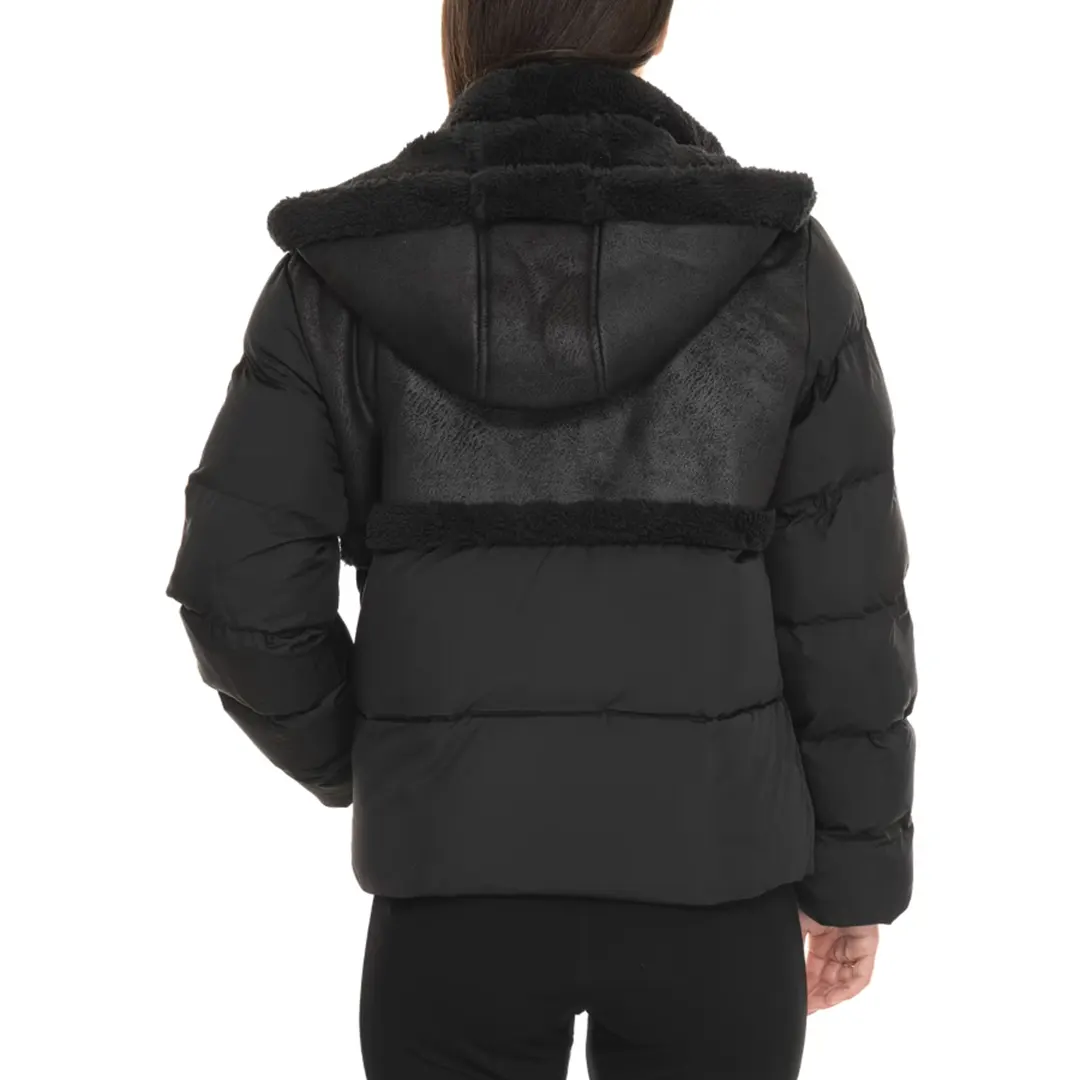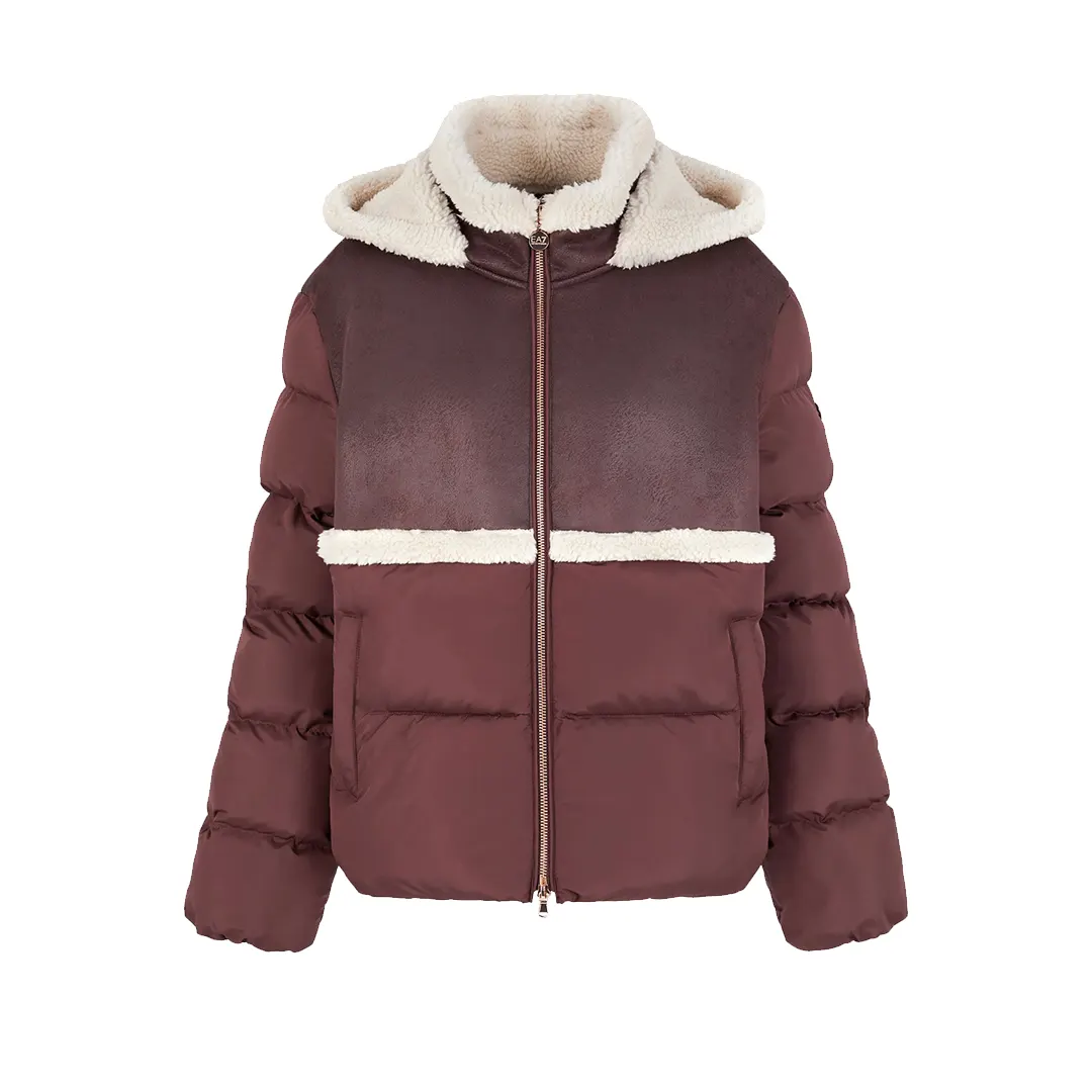 Giacca con cappuccio dal design essenziale realizzato in tessuto tecnico ed impreziosito da inserti effetto montone. Il modello, dall’attitude femminile, presenta un comodo cappuccio, chiusura con zip a doppio tiretto e due tasche laterali zippate. Un modello perfetto per proteggersi dal freddo con stile, personalizzato con il logo scudetto sulla manica sinistra.