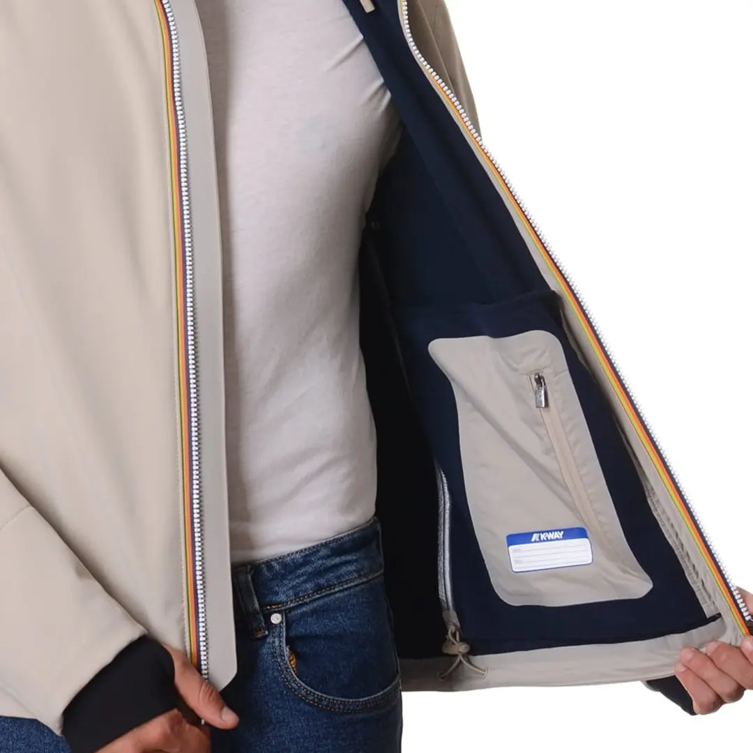 La giacca corta da uomo Jacko ha vestibilità slim e un gusto urbano che interpreta moltissimi look. Il modello si caratterizza per la particolare texture a 3 strati che combina l’esterno in polyestere, una membrana interna isolante ed uno strato in polar morbido sulla pelle. Il tessuto è estremamente performante in termini di resistenza all’acqua perchè sopporta fino a 10000 colonne d’acqua ed è ideale per il passaggio di stagione offrendo protezione, leggerezza e una sensazione piacevole a contatto con la pelle.
