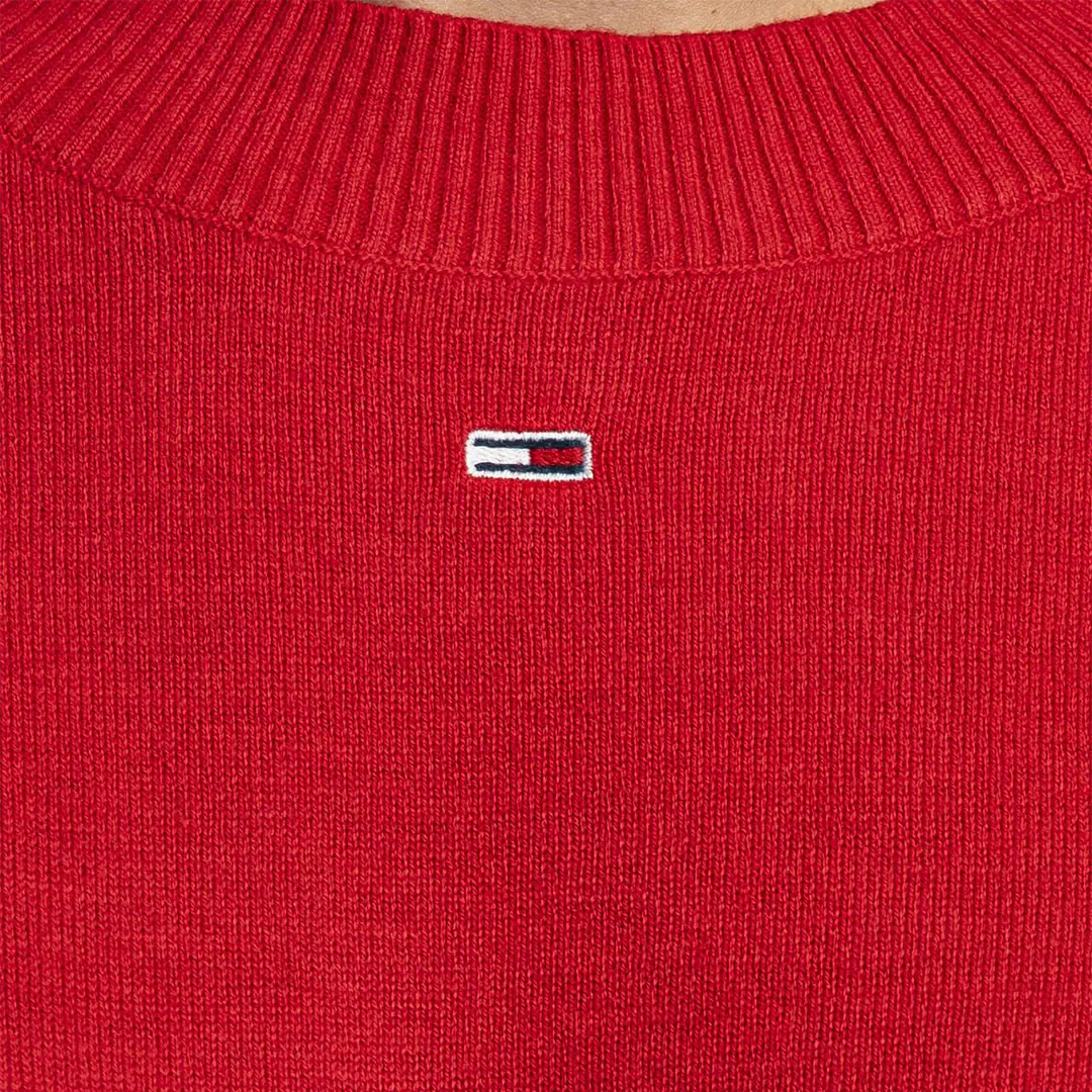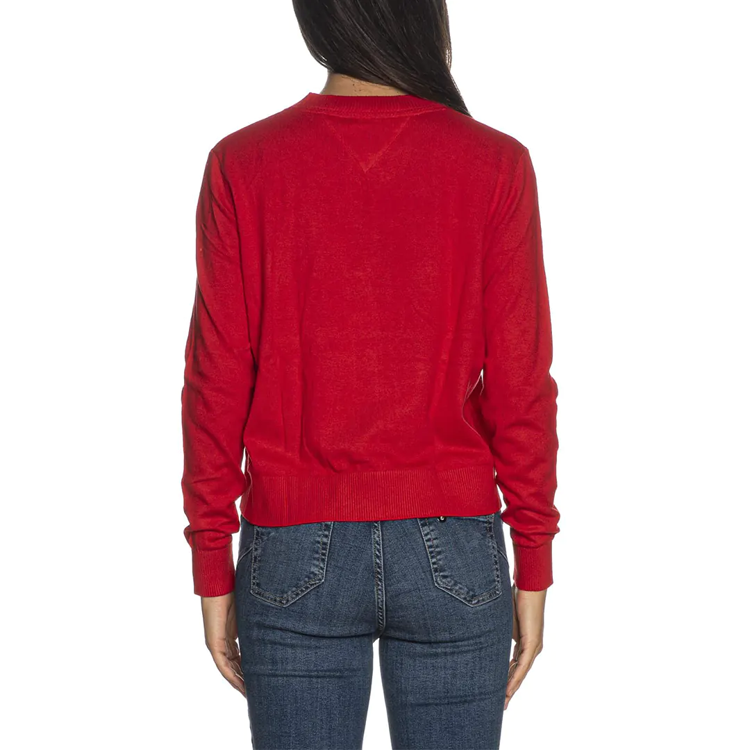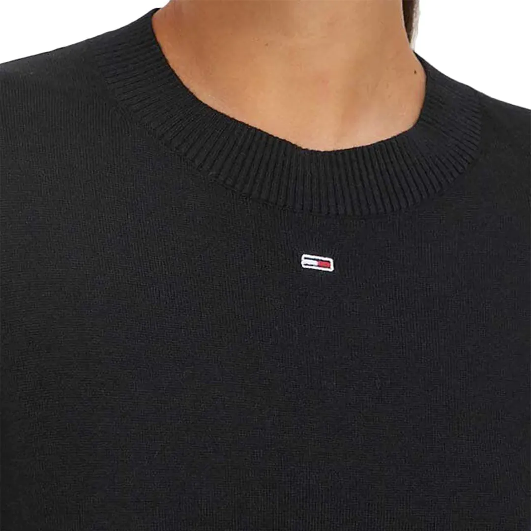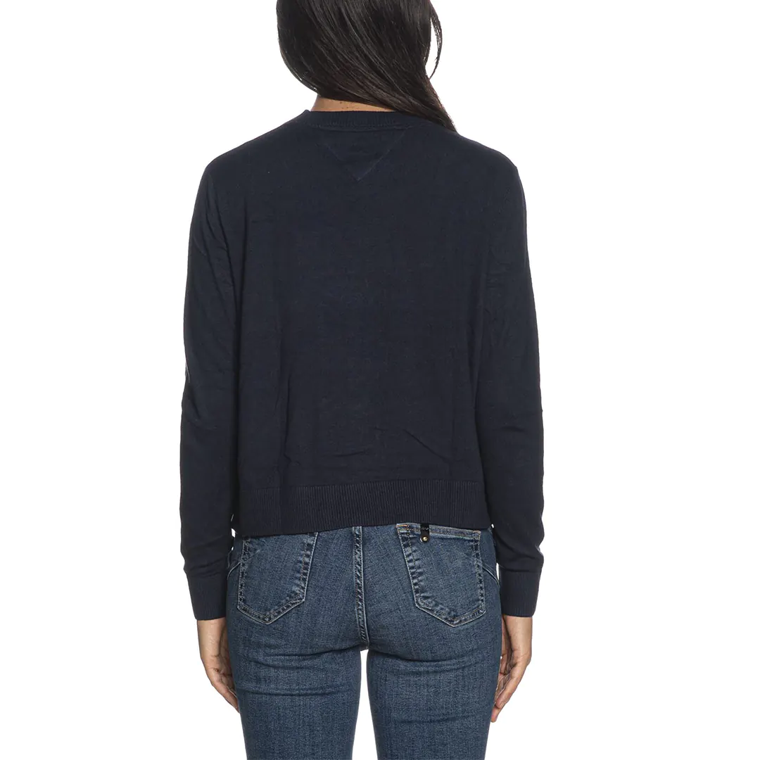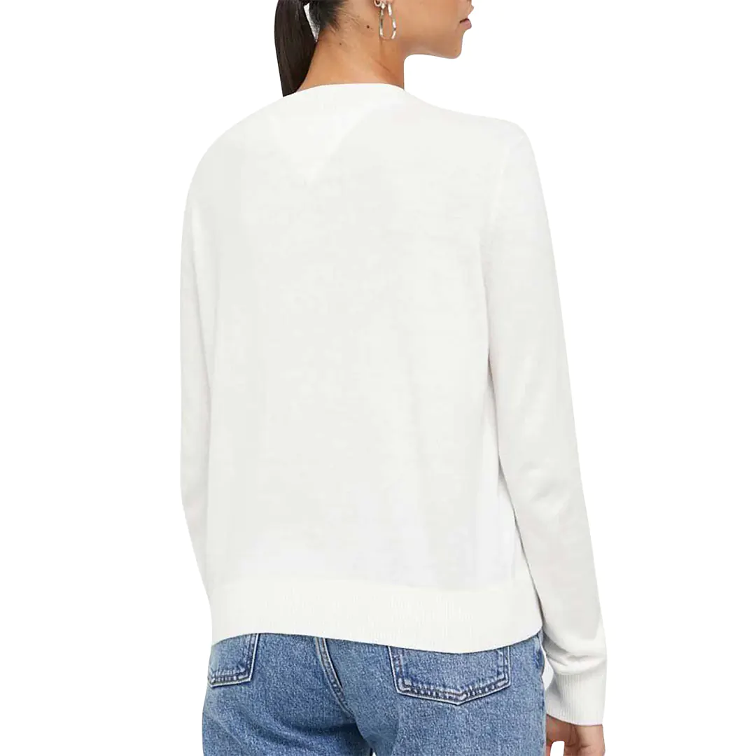 Maglia Tommy Hilfiger Ess Crew Neck Sw da donna in filato rasato di misto cotone parzialmente organico viscosa e poliammide, overfit a manica lunga, con girocollo polsini e cannolè a costine e micro flag istituzionale ricamato a centro petto