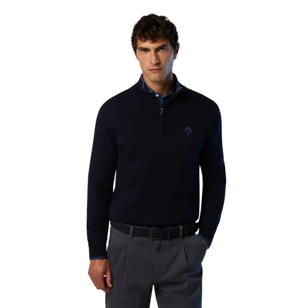 Senza sforzo e senza tempo, questo maglione con collo alto e mezza zip è un classico di qualsiasi guardaroba. Il modello è realizzato in misto cashmere, lana e nylon riciclati, in linea con il nostro impegno positivo per il pianeta. Rifinito con bordi a coste che creano aderenza e il logo North Sails ricamato sul petto.