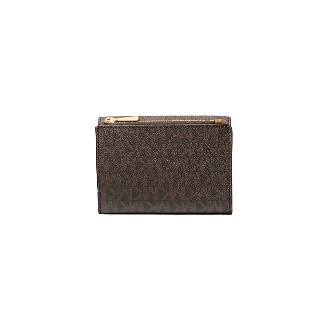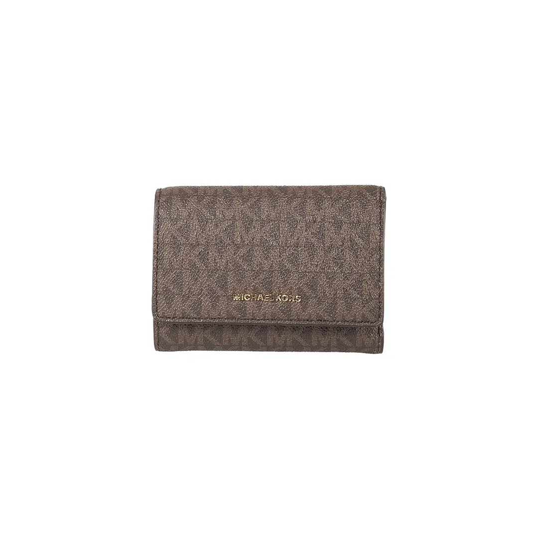 Portafoglio medio in canvas “Signature Logo” con chiusura a patta-bottone, numerosi scomparti per carte e banconote, tasca esterna con zip.