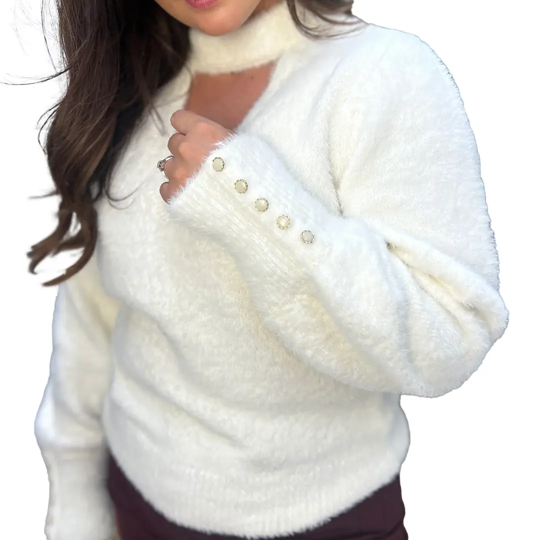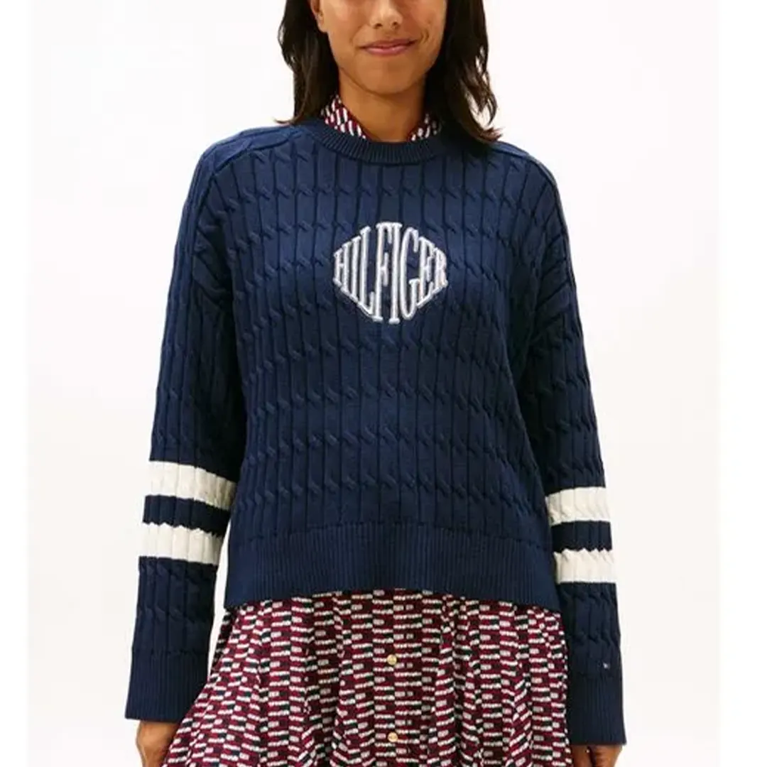 Il pullover in maglia intrecciata, realizzato in puro cotone pettinato, è arricchito dall’iconico logo ricamato sul davanti, per un inconfondibile tocco distintivo.