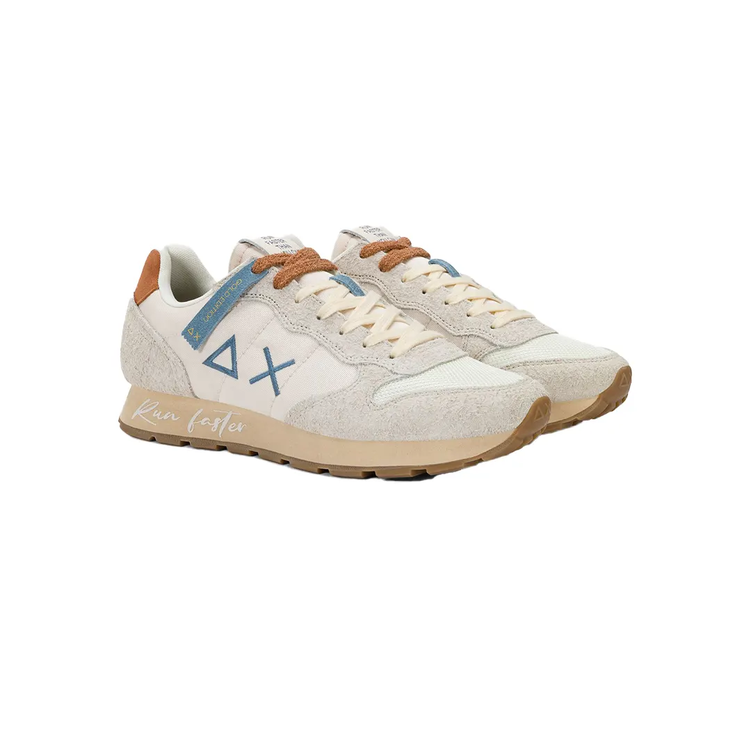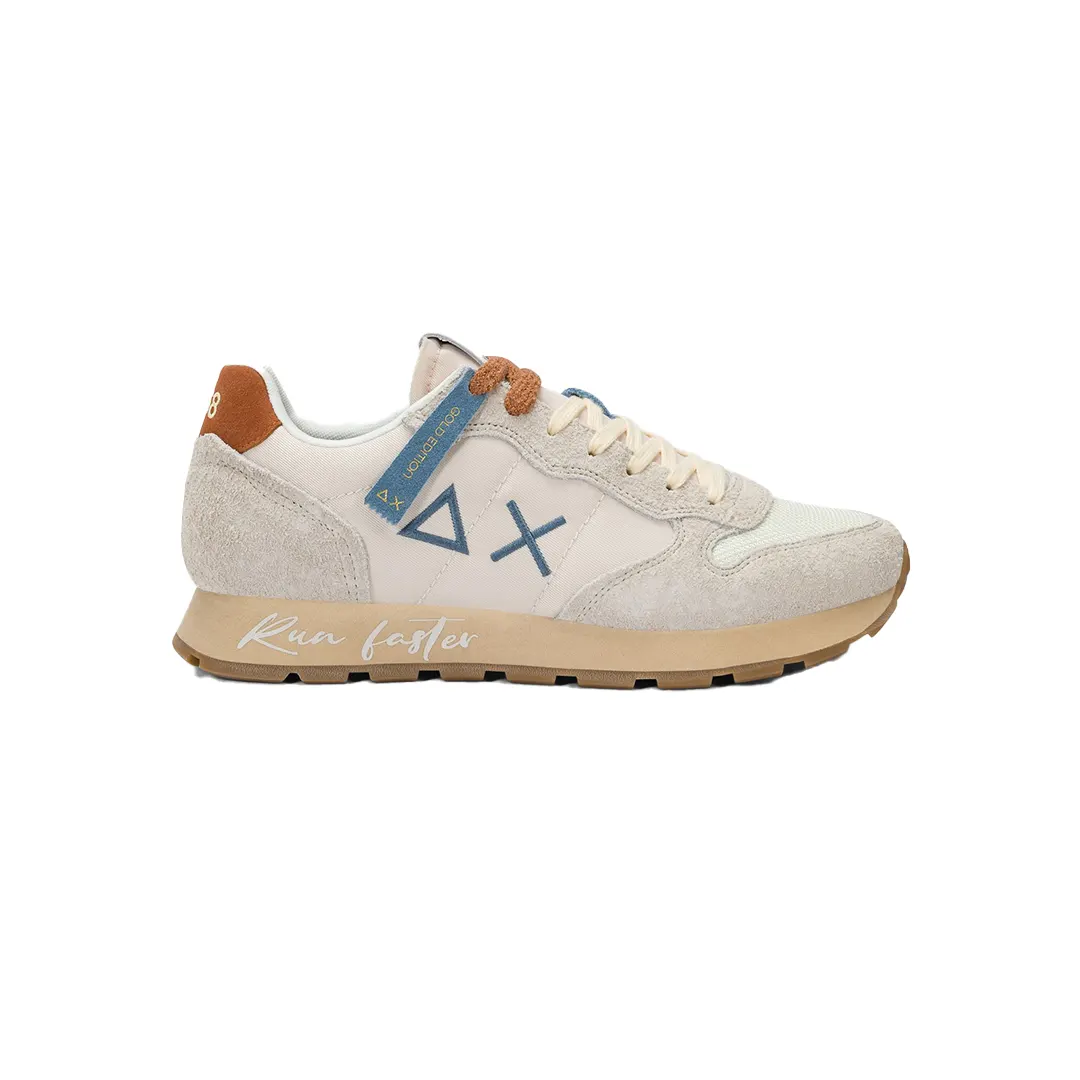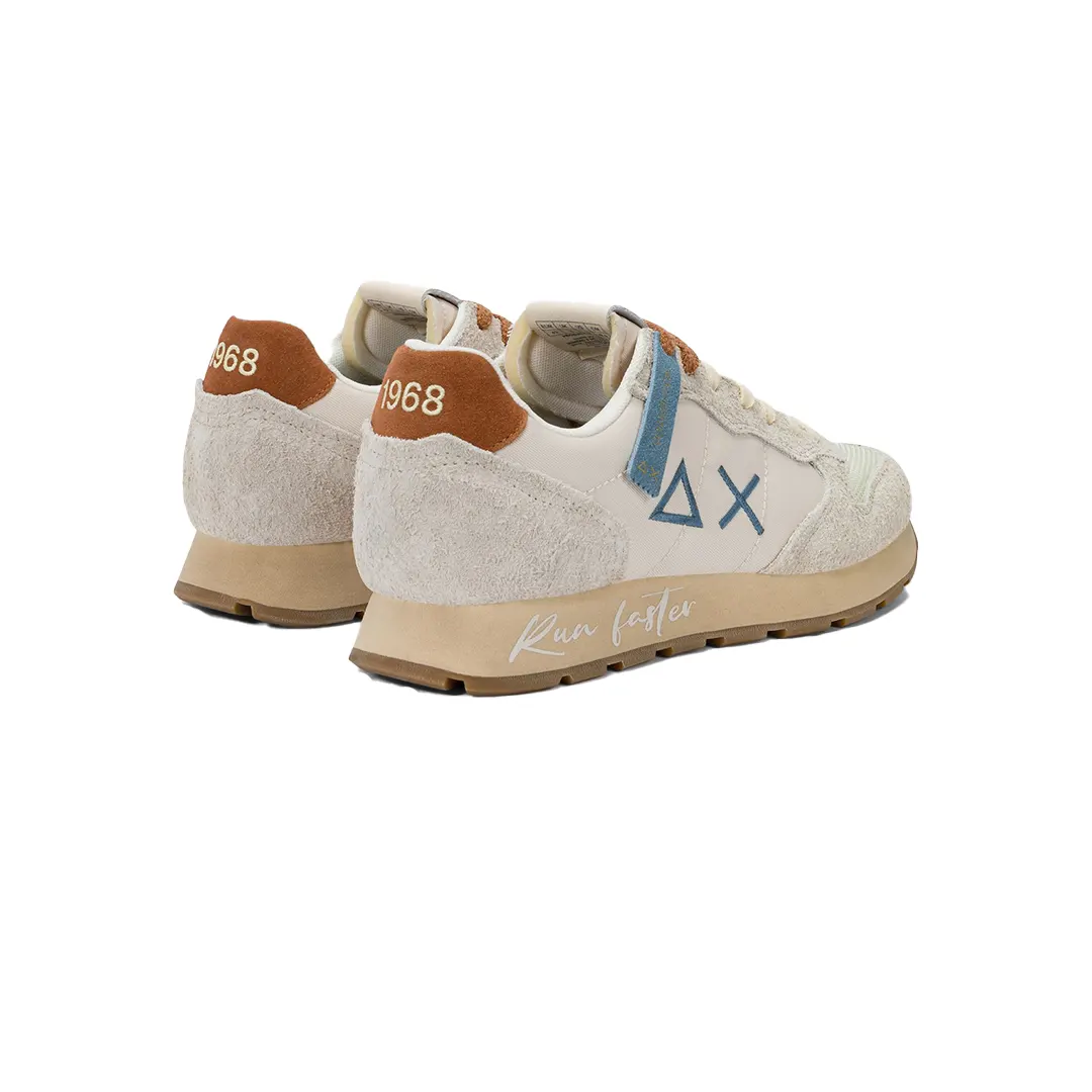 Design classico dall’estetica autentica. La sneaker Tom Vintage si ispira all’icona SUN68 e la reinterpreta con un ricercato effetto used e il lettering “Run faster” che decora la suola. Un modello dal carattere deciso, ideale da indossare insieme alla felpa con trattamento washed per un look retrò dal fascino vissuto.
