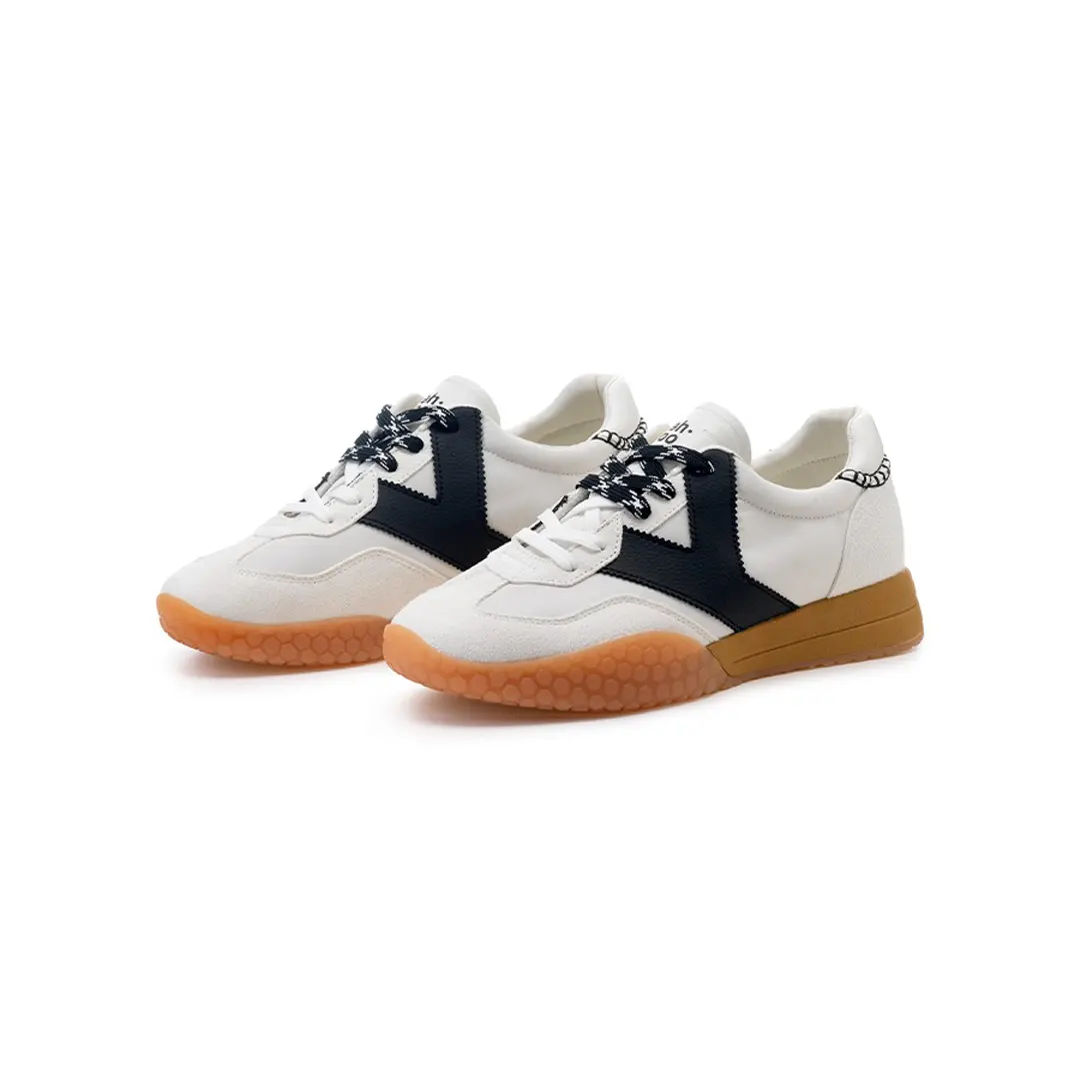 Sneakers vintage contemporanea. Tomaia in nylon, con punta ed asola in pelle scamosciata. Logo in pelle. Doppi lacci in cotone. Tallone in gomma. Suola in gomma, con intersuola ammortizzata in EVA. Fodera in spugna di cotone ed eco-pelle. Soletta estraibile in morbida spugna, foderata in mesh.