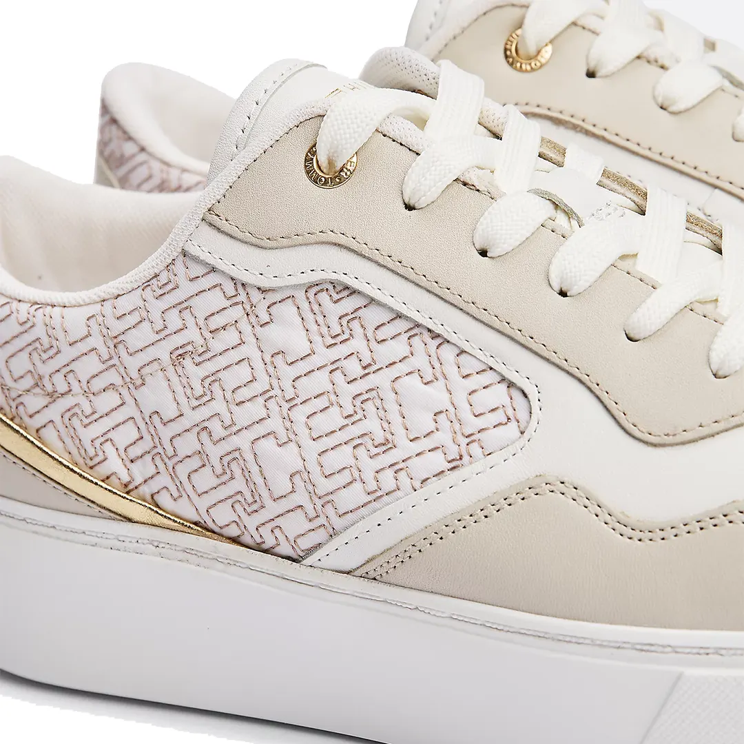• Sezione con monogramma TH ricamato tono su tono ripetuto sul lato