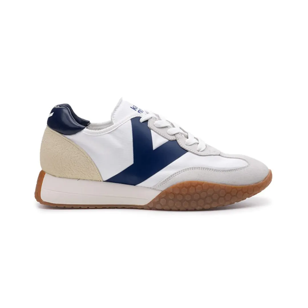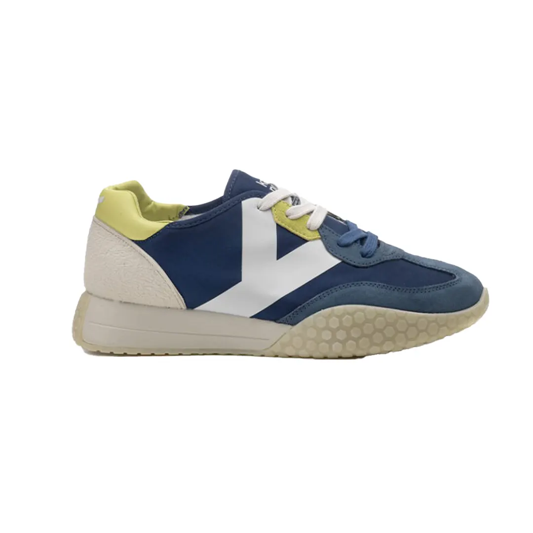 Sneaker vintage contemporanea. Tomaia in nylon traspirante, con punta e sottocchiello in pelle scamosciata. Linguetta in nylon a taglio vivo. Tallone posteriore in gomma. Lacci in cotone naturale. Suola in gomma, con intersuola in EVA ammortizzata. Fodera in spugna. Soletta interna rimovibile in schiuma super morbida, foderata in mesh. Tomaia: nylon + pelle scamosciata + ecopelle + gomma Fodera: tessuto spugna Soletta interna: mesh Suola esterna: gomma + EVA