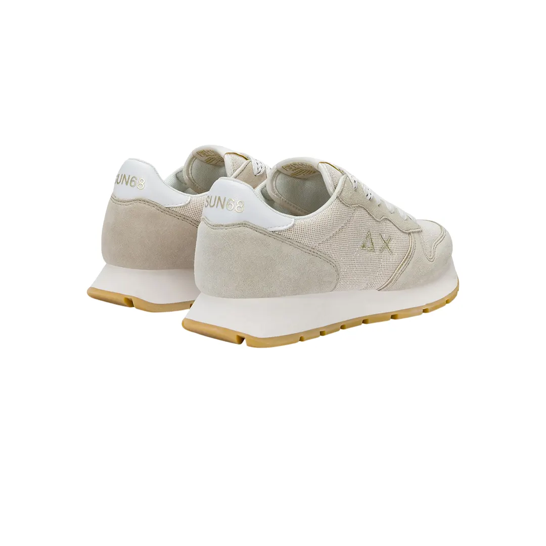 Design casual dall’estetica glamour. La sneaker Ally Glitter è l’icona SUN68 reinterpretata con una speciale tomaia in materiale glitterato, dettagli laminati e il logo ricamato in filo lurex. Perfetta sia con i pantaloni chino sia con i jogging in felpa, eleva il guardaroba quotidiano aggiungendo una nota luminosa che non passa inosservata.