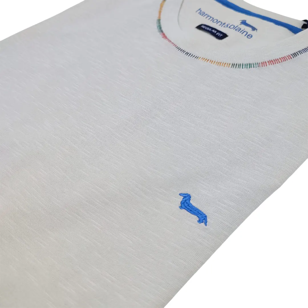 Descrizione: girocollo, maniche corte con iconico logo bassotto e dettagli a righe a contrasto su bordi e colletto.