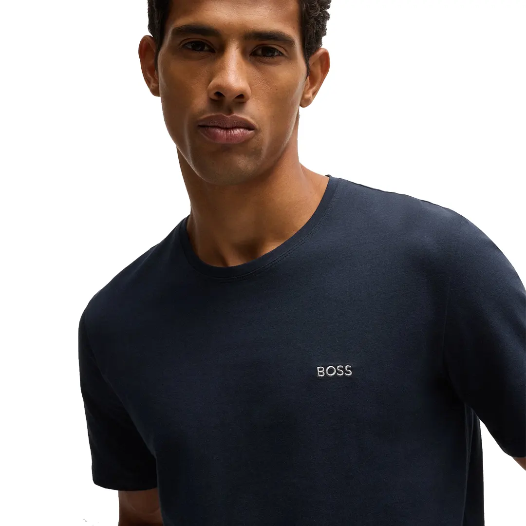 Una T-shirt con vestibilità regular fit. Caratterizzata da un logo ricamato sul petto, questa maglia è realizzata in jersey elasticizzato morbido al tatto. Questo prodotto è parzialmente realizzato in cotone biologico.