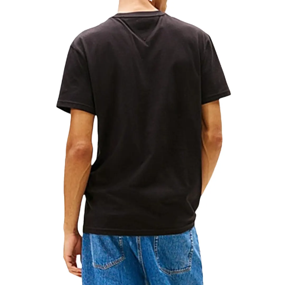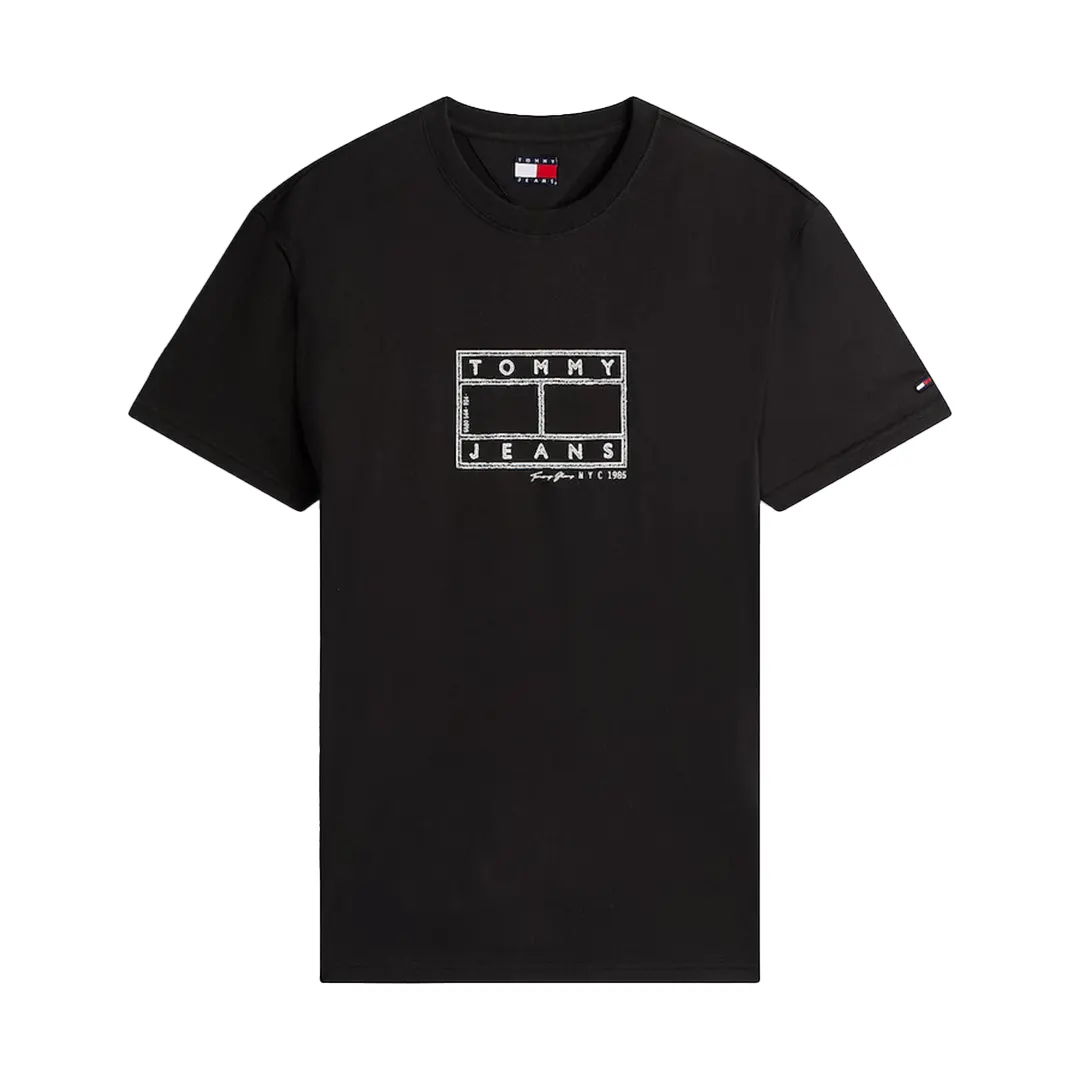 Logo Tommy Jeans stampato sul davanti e logo della bandiera ricamato sulla manica.