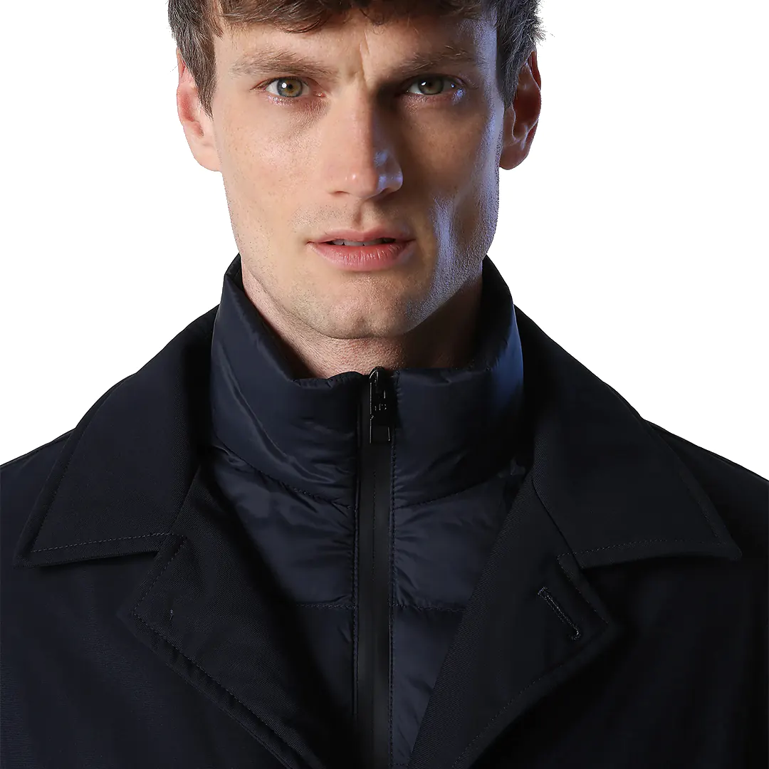 Il collo a camicia, le tasche a filetto e lo spacco sul retro sono dettagli classici del trench